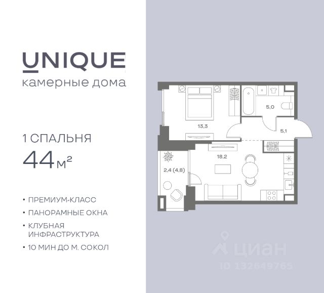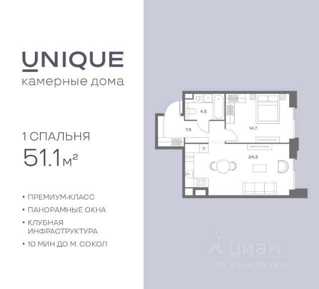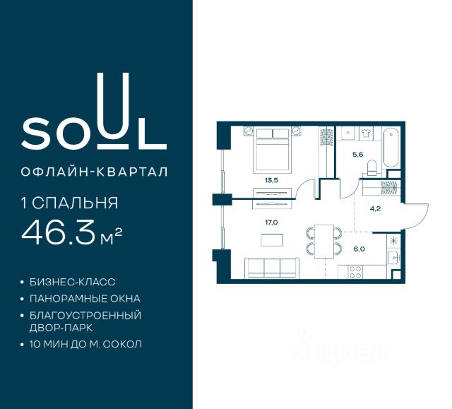 Цены указаны с условием 100% оплаты и стандартной ипотеки. Прямая продажа от застройщика! Продается 1-к. квартира номер 9 общей площадью 46.9 кв.м. на 3-м этаже 9 этажного дома, корпус UNIQUE (премиум-класс). Без отделки. Проект бизнес-класса SOUL от девелопера FORMA. До метро Сокол 10 мин пешком. Архитектура от британского бюро SimpsonHaugh. Благоустройство дворов — Gillespies и GAFA. Территория состоит из культурного парка и приватных дворов. Озеленение в эстетике лесного оазиса. Насыщенное благоустройство: прогулочные тропинки, релакс-зоны, пряный и сенсорный сады, развивающие детские площадки и воркауты. В центре проекта объект культурного наследия — общественное пространство Изофабрика, построенная в 30-х годах по проекту архитектора Георгия Гольца. Здесь будут располагаться мастерские для взрослых и детей, выставочные залы, коворкинги, образовательный центр, рестораны и кафе. Квартиры с панорамными окнами, мастер-спальнями, гардеробными, классическими балконами и лоджиями, видовыми террасами. Высота потолков от 2,9 до 3,5 м. В проекте 2 детских сада на 100 и 200 малышей. Клубная гостиная, фитнес-рум, детская игровая комната, дизайнерские лобби, подземный паркинг и келлеры.