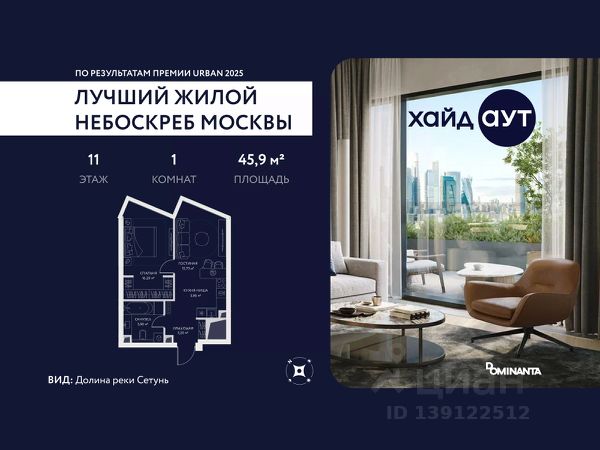 Прямая продажа от застройщика! Продается 1-комнатная квартира площадью 42.7 кв.м. на 5-м этаже 34-этажного дома в жилом комплексе ХАЙДАУТ с панорамными видами: Во двор. Высота потолков 3,25 м. В проекте действуют привлекательные условия покупки: скидка до 15% при рассрочке 0% на 1,5 года или при оплате одним платежом (в том числе ипотека). Предложение действует до 31.03.2026. ХАЙДАУТ — премиальный проект компании Dominanta. Это новый уровень жизни и комфорта без компромиссов. Две башни — 34 и 49 этажей — открывают захватывающие виды на Москву. Архитектурной доминантой проекта становится мост, соединяющий башни на высоте 80 метров. Закрытая территория, охрана 24/7, зона экстренной безопасности на подземном уровне, система пожаротушения. На мосту между башнями на 22-м этаже находится общественное пространство SocialHUB — предусмотрено 16 комфортных пространств для работы, отдыха и развлечений с панорамными видами и клубным форматом доступа. Концепция благоустройства ХАЙДАУТ — баланс между природой и технологичным городом будущего. На территории сада предусмотрены 15 зон для отдыха, работы, спорта и детей. Знаковым местом станет центральная площадь с амфитеатром и водопадом — сочетание камней, растений и струящейся воды создает идеальный баланс с природой. Застройщик АО "СЗ "ХАЙДАУТ", ИНН 7729058636, ОГРН 1027739319420. Проектная декларация на сайте наш.дом.рф. Предложение не является публичной офертой.