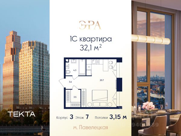 Рассрочка 0% с платежом от 250 000 ₽ в месяц. 1-комн. квартира в ЖК "ЭРА" на 7 этаже в 37 этажном здании Корпус 6. Общая площадь: 33.6 кв.м., жилая: 20.50 кв.м. Высота потолков 3.30 м. Современный премиум-квартал ЭРА на Дербеневской набережной, формирующий новый архитектурный облик Даниловского района Москвы. Жилой комплекс из шести высотных корпусов выполнен в актуальной интерпретации стиля ар-деко, где ритмичные линии фасадов, натуральный мрамор и изысканные орнаменты создают гармоничный и запоминающийся образ. ЭРА предлагает жителям единый просторный закрытый двор. Инфраструктура двора включает разнообразные детские игровые площадки, зоны для занятий спортом, а также места для спокойного отдыха — в всесезонном зеленом лабиринте или яблоневом саду. Для озеленения территории планируется высадка около 3000 деревьев и кустарников. Их сохранность обеспечат система автополива, а для комфорта в холодное время года малые архитектурные формы будут оборудованы подогревом. Вторая очередь комплекса включает три корпуса высотой от 37 до 52 этажей. Впечатляющие входные группы, разработанные бюро ХААСТ, встречают жителей потолками 8,8 метров. В лобби создана атмосфера уюта благодаря индивидуальной ароматизации и музыкальному сопровождению. Здесь же обустроена кофейная зона с профессиональной кофемашиной, а для дополнительного удобства установлен постамат. Высокий стандарт чистоты в любое время года обеспечивают роботы-уборщики, что подчеркивает технологичность комплекса ЭРА. Для комфортного подъезда такси перед каждым корпусом предусмотрены специальные зоны подачи машины и высадки пассажиров. Подземный паркинг на 285 мест. Ключевое преимущество — превосходная локация в развивающемся районе с готовой инфраструктурой. Всего в 5 минутах от Садового кольца, в шаговой доступности от Замоскворечья и набережной Москвы-реки, вы сможете наслаждаться динамикой городской жизни. При этом в самом комплексе на первых этажах будут работать кафе, магазины, салоны красоты и детские образовательные пространства. ЭРА — это гармоничный симбиоз статусного адреса, безупречного сервиса и приватности для жизни вашей мечты.