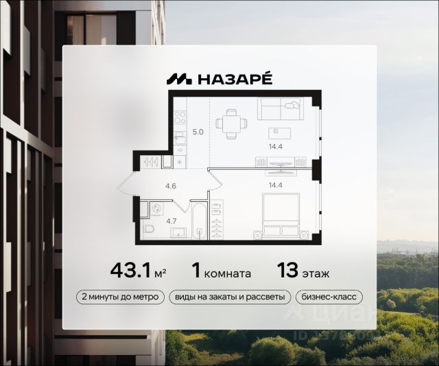 Просторная 1-комнатная квартира для молодой семьи. Общая площадь - 48.7 м2, удобная планировка, кухня-гостиная 21.6 м2. Панорамные виды из окон на две стороны - на национальный парк "Лосиный остров" и благоустроенный внутренний двор. Условия покупки: - Скидка при полной оплате - 10% - Ипотека от 3,5% на весь срок или 0,11% на первый год - Рассрочка без процентов - Trade-in с проживанием на время строительства дома НАЗАР - шесть домов бизнес-класса высотой 24-43 этажа. Проект расположен рядом с национальным парком "Лосиный остров" и парком "Сокольники". В продаже квартиры с мастер-спальнями, кухнями-гостиными, открытыми террасами, просторными кладовыми и ванными с окном. Форматы - от светлых студий 21,6 м2 до семейных 4-комнатных 125,5 м2. Часть лотов - с предчистовой отделкой White Box. Транспортная доступность: - Метро "Бульвар Рокоссовского" и МЦК - 2 мин. пешком - Северо-Восточная хорда - 3 мин. на автомобиле - Третье транспортное кольцо - 15 мин. на автомобиле - Садовое кольцо - 18 мин. на автомобиле Инфраструктура: В составе проекта появится собственный детский сад и торгово-развлекательный центр с акцентом на шопинг и досуг. На первых этажах домов откроются кафе, пекарни, магазины и службы сервиса. В районе Богородское находятся престижные школы, медцентры, магазины и спортивные клубы.