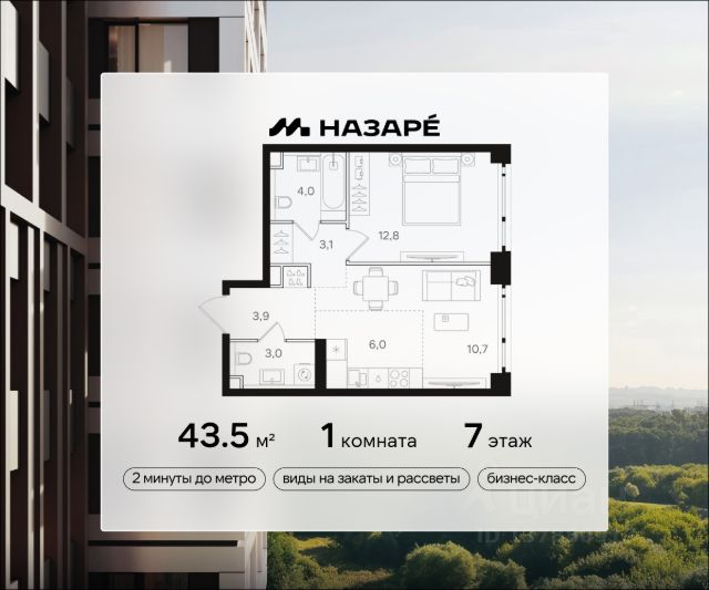 Просторная 1-комнатная квартира для молодой семьи. Общая площадь - 31.4м2, удобная планировка, кухня 14.1м2. Панорамные виды из окон на две стороны - на национальный парк "Лосиный остров" и благоустроенный внутренний двор. Условия покупки: - Скидка при полной оплате - 10% - Ипотека от 3,5% на весь срок или 0,11% на первый год - Рассрочка без процентов - Trade-in с проживанием на время строительства дома НАЗАРЕ - шесть домов бизнес-класса высотой 24-43 этажа. Проект расположен рядом с национальным парком "Лосиный остров" и парком "Сокольники". В продаже квартиры с мастер-спальнями, кухнями-гостиными, открытыми террасами, просторными кладовыми и ванными с окном. Форматы - от светлых студий 21,6 м2 до семейных 4-комнатных 125,5 м2. Часть лотов - с предчистовой отделкой White Box. Транспортная доступность: - Метро "Бульвар Рокоссовского" и МЦК - 2 мин. пешком - Северо-Восточная хорда - 3 мин. на автомобиле - Третье транспортное кольцо - 15 мин. на автомобиле - Садовое кольцо - 18 мин. на автомобиле Инфраструктура: В составе проекта появится собственный детский сад и торгово-развлекательный центр с акцентом на шопинг и досуг. На первых этажах домов откроются кафе, пекарни, магазины и службы сервиса. В районе Богородское находятся престижные школы, медцентры, магазины и спортивные клубы.
