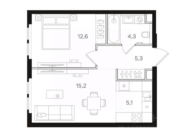 Общая площадь - 42.50