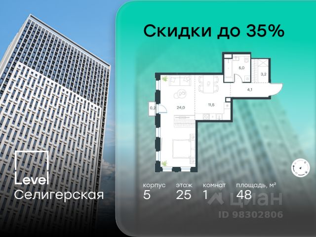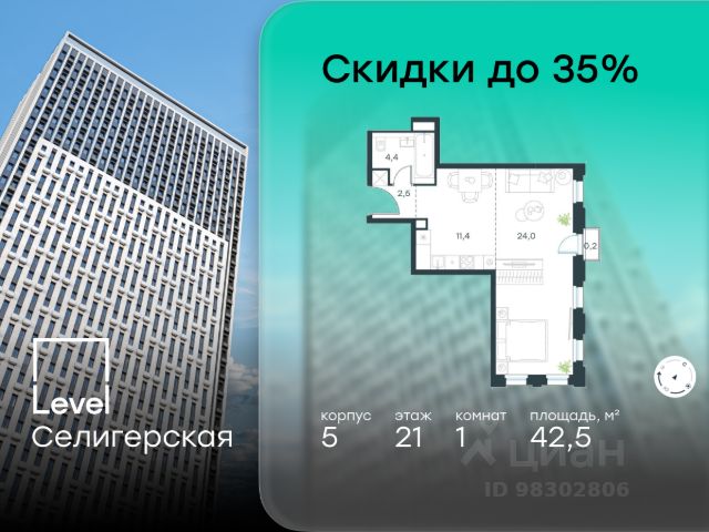 Прямая продажа от застройщика. Продаётся 1-комнатная квартира общей площадью 53.82 м² с предчистовой отделкой в ЖК "Селигер Сити" на 29-м этаже башни Лисицкого. Корпуса четвертой очереди ЖК "Селигер сити" названы в честь трех великих представителей науки и архитектуры, новаторское видение которых — слишком смелое для своего времени — нашло воплощение в уникальных домах жилого комплекса. Вдохновленные авангардными идеями знаменитого советского архитектора Эля Лисицкого, архитекторы создали яркий центр притяжения всего района, задающий новый стандарт жизни в современном мегаполисе — две высокие "Башни Лисицкого" с современной интерпретацией горизонтального небоскреба. Преимущества проекта: - 2 минуты пешком от метро "Селигерская" - Архитектурное решение от голландского бюро MLA + - Одна из самых больших придомовых территорий в Москве - Огороженная охраняемая территория, круглосуточное видеонаблюдение - Европейский подход к благоустройству от бюро Wowhaus: появится парадный бульвар, аллея с фонтаном и арт-объектом, что дополнит уже сформированное благоустройство: детские площадки для разных возрастов, площадки для воркаута, дорожки для бега и пеших прогулок, места для отдыха - Два детских сада, школа начальных классов и центр доп.образования - Искусственный пруд на территории комплекса с благоустроенной набережной и мостом - Продуманная концепция инфраструктуры: уютные кафе и рестораны, супермаркет, магазин фермерских продуктов, бытовые службы, салон красоты, детские сады - Ультрасовременные инженерные решения - Подземный паркинг с зарядными станциями для электромобилей, постами подкачки шин и келлерами - Лобби по индивидуальному дизайн проекту от европейского бюро Вlank Architects: лаунж-зоны, ресепшен, колясочная, помещение для мытья лап животным после прогулки - Надежный девелопер с опытом премиальных проектов MR Расположение комплекса: - 2 минуты от станции метро "Селигерская" - 7 минут на машине до станции метро "Окружная" - Предусмотрен удобный выезд в сторону ТТК (всего 9 км или 15 минут без пробок) - МКАД в 10 минутах на машине Компания MR предлагает своим клиентам специальные условия приобретения квартир в рамках программ ипотечного кредитования от банков-партнеров. Продам 1-комнатную квартиру в ипотеку в новостройке рядом с метро Селигерская.