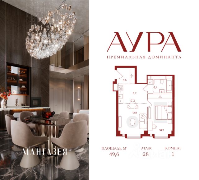 1-комнатная квартира площадью 37.50 м2. Высота потолков 3.16 м. Этаж 16 из 41. О проекте АУРА новая премиальная доминанта Москвы в 10 минутах от Садового кольца. Проект состоит из 42-этажной Бронзовой башни и 41-этажной Серебряной. Рядом набережная Москвы-реки, Даниловский рынок, музеи и галереи, престижные школы и вузы. Двор и благоустройство Приватная территория АУРЫ состоит из нескольких функциональных зон для тихого отдыха, работы и активного времяпрепровождения на свежем воздухе. На нижнем уровне расположены детские и спортивные площадки, скалодром и крытый павильон для подвижных игр. Выше — амфитеатр для отдыха и вечерних променадов, уличный коворкинг с мебелью и лаунж-зоны с лежаками у воды. На крыше — тихий уголок для занятий йогой, встречи рассветов и наслаждения закатами. По всему двору проложены пешеходные дорожки с подогревом в зимний сезон. Придомовую территорию АУРЫ украсит уникальный для Москвы объект — скала из натурального камня с водопадом, которая станет новой городской достопримечательностью. Эксклюзивная инфраструктура Только для резидентов: • Бьюти-комната; • Коворкинг, переговорные и акустические кабинеты; • Детская игровая комната; • Спортзал и студия для тренировок; • Просторные колясочные; • Сервисная комната; • Лапомойки для домашних питомцев. Инфраструктура в составе проекта: • Ресторан авторской кухни; • Современная медицинская клиника; • Частный детский сад; • Бизнес-центр класса "А"; • Коммерческие помещения, закрывающие любые потребности — супермаркет, химчистка и др. Атрибуты комфорта • Индивидуальная вентиляция квартир; • Вентиляция с очисткой воздуха в общих зонах; • Мультизональное центральное кондиционирование; • Горячая вода круглый год; • Вода качества, сопоставимого с питьевой; • Усиленная звукоизоляция квартир. Входные группы • Гранд-лобби в стиле современной роскоши; • Дизайнерские лобби в каждой башне; • Панорамное остекление. Квартиры Более 40 планировок: от уютных студий до просторных семейных лотов. Всего 916 квартир площадью от 28,1 до 148,8 м². Высота потолков от 3,16 до 6,2 м. Уникальные планировки: • Квартиры с террасами; • Квартиры с окном в ванной; • Квартиры с круговым остеклением; • Двухуровневые пентхаусы. Паркинг и келлеры Двухуровневый подземный паркинг на 563 парковочных места: • Постоянные места: 496 (в том числе 48 мест для маломобильных); • Гостевые места: 67; • Персональные кладовые и велостанция; • Мойка автомобилей; • Станция для подкачки шин; • Зарядки для электромобилей; • Зона для разгрузки крупногабаритных предметов. Интеллектуальные системы • Персональный бесконтактный доступ на территорию и в здание по электронному ключу; • Премиальные лифты; • Автоматический въезд на паркинг для резидентов по распознаванию номеров; • Круглосуточное видеонаблюдение с возможностью пуш-уведомлений; • Система датчиков для круглосуточного мониторинга; • Усиленный сигнал связи — стабильный прием сотовой связи и интернета на всей территории.