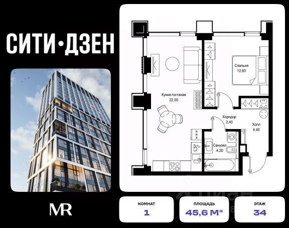 Продается 1-комнатная квартира от застройщика в жилом мультиквартале СИТИДЗЕН на 12-м этаже в корпусе #7. Общая площадь лота составляет 40.50 м² В лобби корпуса #7 представлены: 1. Small-лобби с зоной отдыха 2. Почта 3. Колясочная 4. Лапомойка 5. Лифтовой холл 6. Санузел 7. Помещение уборочного инвентаря СИТИДЗЕН — это большой город в миниатюре. Инфраструктура мультиквартала организована по принципу шаговой доступности от подъезда до любой нужной точки: супермаркета, кофейни, салона красоты, фитнес-центра и др. В домах представлены лобби с атмосферой премиального резорта, дизайн которых вдохновлен французскими интерьерами 1960-х годов. Концепция благоустройства территории мультиквартала предусматривает большое количество вечнозеленых растений, что создает ощущение максимальной близости к природе. Жителей квартала ждут места для отдыха, игр, занятий спортом и прогулок с домашними питомцами. В приватном дворе с собственным садом предусмотрена зеленая комьюнити-гостиная для дружеского отдыха и общения, одна из стен которой подходит для кинопроекций, а также зеленый рабочий кабинет в саду (бизнес-гардена), оборудованный wi-fi станцией и usb-разъёмами для зарядки устройств. Маленьких жителей ждут авторские игровые площадки для разных возрастных групп (от 0 до 12 лет). Начало строительства - 1 квартал 2024 года. Окончание строительства - 3 квартал 2027 года.Компания MR предлагает своим клиентам специальные условия приобретения квартир в рамках программ ипотечного кредитования от банков-партнеров.