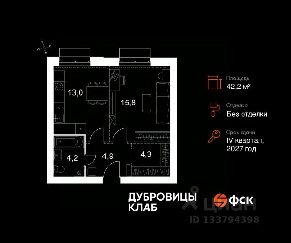 Прямая продажа от застройщика! Загородный жилой комплекс комфорт-класса. Продаётся 1-к квартира 140 общей площадью 35.0 кв.м на 4-м этаже 4 этажного дома. Без отделки. Расположение комплекса: "Дубровицы Клаб" — это современный малоэтажный комплекс комфорт-класса, который сочетает в себе атмосферу уюта загородной жизни и все преимущества развитой городской инфраструктуры. В проекте представлено два формата жилья - комфортные таунхаусы и эргономичные квартиры. Территория "Дубровицы Клаб" приватные зелёные дворы без автомобилей, школа, детский сад и спорткомплекс с бассейном. Транспортная доступность: - 20 минут на машине до станции МЦД "Подольск" - 50 минут на машине до МКАД - 50 минут на машине до ст.метро Улица Скобелевская Внутренняя инфраструктура: "Дубровицы Клаб" объединяет динамику городской жизни и спокойствие природы, создавая пространство, где работа и отдых, движение и умиротворение сливаются в единый поток — в жизнь, наполненную балансом и вдохновением. Место силы — это философия жизни, воплощённая в благоустроенной среде загородного комплекса "Дубровицы Клаб". Здесь всё создано для восстановления энергии и гармонии: прогулочные маршруты, зоны отдыха, воркаут-площадки и природные пространства, плавно переходящие в уют жилых кварталов. Для удобства жителей на территории комплекса открыта торговая галерея, где собрано всё необходимое: супермаркет, аптека, зоомагазин, винный бутик, лавка деликатесов, пекарня, химчистка и дом быта.