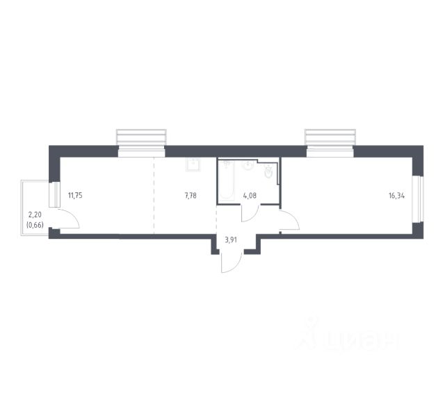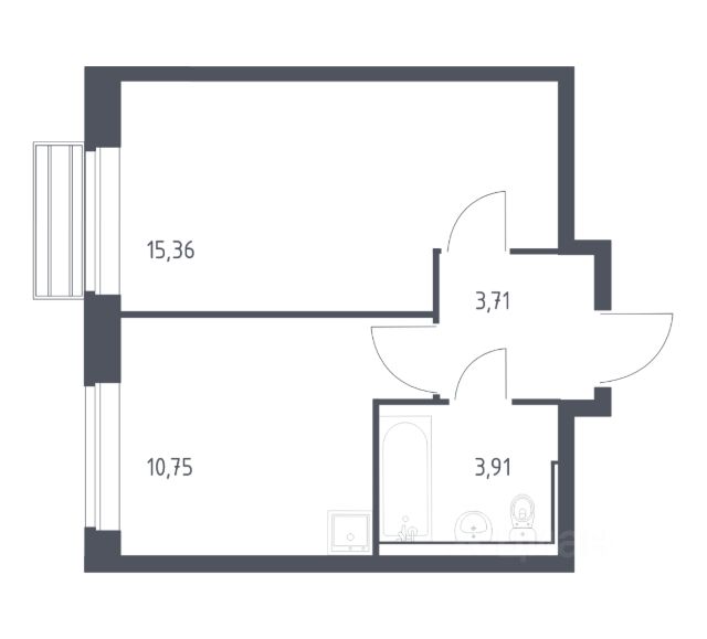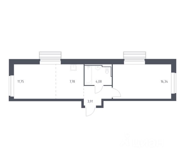 Продаётся 1-комнатная квартира 99, площадью 34,95 м², на 8 этаже в ЖК "Притяжение Сити" корпус 8. Стоимость — от 8211145 руб. Квартира без отделки, планировка односторонняя, окна на улицу.