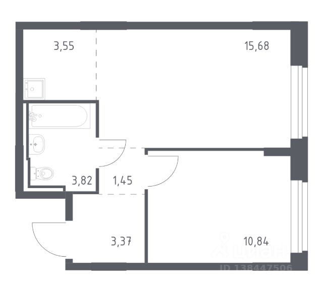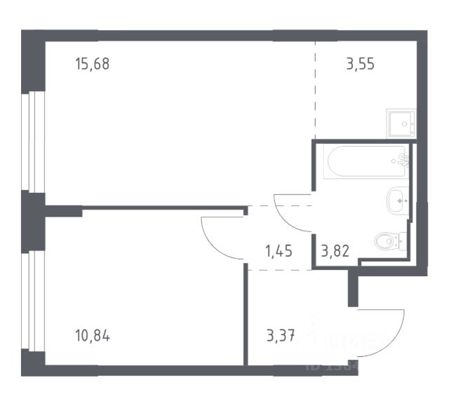 Продаётся 1-комнатная квартира 568, площадью 32,26 м², на 14 этаже в ЖК "Притяжение Сити" корпус 8. Стоимость — от 8429878 руб. Квартира без отделки, планировка односторонняя, окна на улицу.
