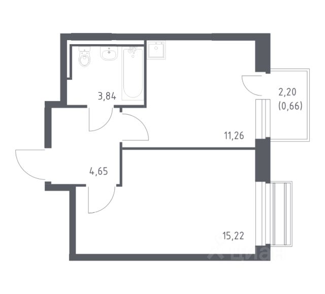 Продаётся 1-комнатная квартира 374, площадью 33,37 м², на 2 этаже в ЖК "Притяжение Сити" корпус 8. Стоимость — от 7791940 руб. Квартира без отделки, планировка односторонняя, окна во двор.
