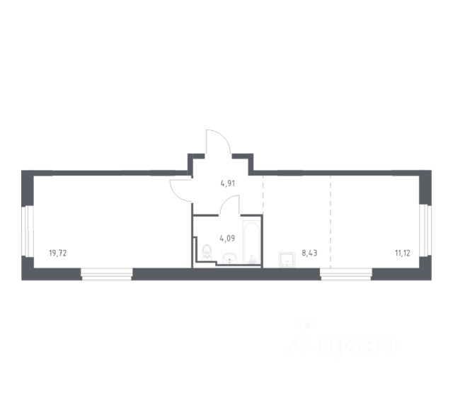 Продаётся 1-комнатная квартира 60, площадью 36,28 м², на 6 этаже в ЖК "Притяжение Сити" корпус 8. Стоимость — от 8523614 руб. Квартира без отделки, планировка односторонняя, окна во двор.