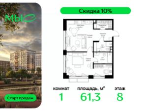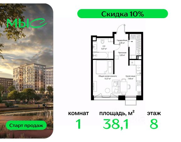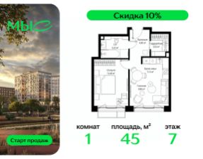 Прямая продажа от застройщика. Продаётся 1-комнатная квартира общей площадью 44.25 м² без отделки в премиальном жилом комплексе "МЫС" на 2-м этаже 12 этажного дома. Квартира расположена в корпусе "Волга". Проект МЫС — это, прежде всего, идеальное место для семей. В рамках проекта построят государственную школу, два детских сада и дворец спорта площадью 20 000 м2 с термальным комплексом, выплывным бассейном, фитнес-залом, теннисными, сквош и падел кортами и секциями для детей. На территории площадью, сравнимой с тремя парками Зарядье, появятся кафе и рестораны, пруд с набережной, спортивные и детские площадки, скейт-парк, лыжные и веломаршруты. Расположение: - 2 минуты до скоростной трассы М1 и Минского шоссе; - 10 минут до МКАД; - 15 минут до МЦД Лесной Городок - 20 минут до делового центра "Москва-Сити"; - 28 минут до аэропорта "Внуково". Благоустройство: - велосипедные и лыжные маршруты; - собственная набережная и парк; - лаунж-зоны в окружении природы; - беседки у очага; - дворец спорта площадью 20 000 м²; - термальный комплекс с тремя бассейнами; - 4 теннисных и падел-корта; - 6 сквош-кортов; - многофункциональный спортзал; - скейт-парк; - просторная площадь для прогулок с фонтаном; - детский клуб с творческими секциями; - гастро-доминанта; - кафе у пруда, рестораны, ритейл. Окружение - соседство с лесным фондом; - школа на 1250 мест и 2 детских сада на 350 и 255 мест; - Дубковский и Подушкинский леса, парк "Рассказовка", Мещерский парк. Действуют специальные условия при 100% оплате, подробности уточняйте у менеджера в офисе продаж.