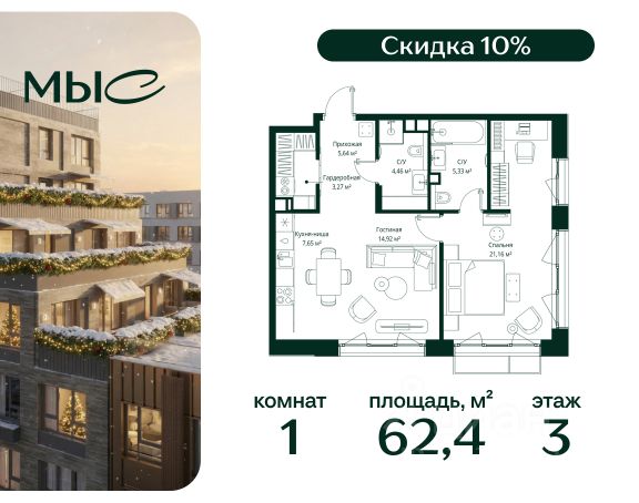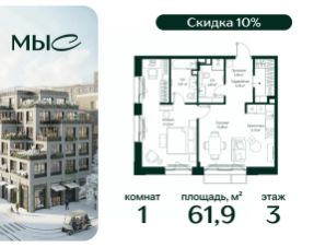 Прямая продажа от застройщика. Продаётся 1-комнатная квартира общей площадью 44.25 м² без отделки в премиальном жилом комплексе "МЫС" на 2-м этаже 12 этажного дома. Квартира расположена в корпусе "Волга". Проект МЫС — это, прежде всего, идеальное место для семей. В рамках проекта построят государственную школу, два детских сада и дворец спорта площадью 20 000 м2 с термальным комплексом, выплывным бассейном, фитнес-залом, теннисными, сквош и падел кортами и секциями для детей. На территории площадью, сравнимой с тремя парками Зарядье, появятся кафе и рестораны, пруд с набережной, спортивные и детские площадки, скейт-парк, лыжные и веломаршруты. Расположение: - 2 минуты до скоростной трассы М1 и Минского шоссе; - 10 минут до МКАД; - 15 минут до МЦД Лесной Городок - 20 минут до делового центра "Москва-Сити"; - 28 минут до аэропорта "Внуково". Благоустройство: - велосипедные и лыжные маршруты; - собственная набережная и парк; - лаунж-зоны в окружении природы; - беседки у очага; - дворец спорта площадью 20 000 м²; - термальный комплекс с тремя бассейнами; - 4 теннисных и падел-корта; - 6 сквош-кортов; - многофункциональный спортзал; - скейт-парк; - просторная площадь для прогулок с фонтаном; - детский клуб с творческими секциями; - гастро-доминанта; - кафе у пруда, рестораны, ритейл. Окружение - соседство с лесным фондом; - школа на 1250 мест и 2 детских сада на 350 и 255 мест; - Дубковский и Подушкинский леса, парк "Рассказовка", Мещерский парк. Действуют специальные условия при 100% оплате, подробности уточняйте у менеджера в офисе продаж.