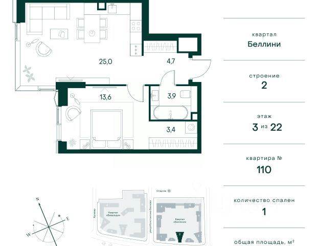 Продаётся 1-комнатная квартира 38 м². В жилом районе Алиа на 22-м этаже 22-этажного дома. Жилой район Алиа — это дома бизнес-класса у слияния Москвы-реки и Сходни. Алиа находится в Покровском-Стрешневе, экологически чистом районе на престижном северо-западе столицы. Район возводится на бывшей территории Тушинского аэрополя, где никогда не было промышленного производства. Алиа — это район разностороннего развития, спроектированный по принципу WORK.LIVE.PLAY.LEARN. Это "15-минутный город", где вся необходимая для комфортной жизни инфраструктура — на расстоянии приятной прогулки. У района удобное расположение: отсюда меньше 10 минут пешком до станций метро "Спартак" и "Тушинская" и всего полчаса на автомобиле до центра города или аэропорта Шереметьево. Архитектурную концепцию Алиа разработало бюро SOM (Skidmore, Owings & Merrill), авторы знаменитой "Бурдж-Халифа". В Алиа больше 140 планировочных решений, среди которых — редкие для Москвы форматы: квартиры с окном в ванной, пентхаус, сити-юниты и таунхаусы. Почти половина территории района отдана под благоустройство. В Алиа три парка: Линейный парк с кафе и магазинами, Центральный парк с амфитеатром, сухим фонтаном и большим плейхабом для детей всех возрастов и Прибрежный парк на собственной набережной, одной из самых длинных в Москве. В каждом урбан-блоке — закрытый внутренний двор с гипоаллергенными растениями и детской площадкой. В лобби каждого жилого корпуса в Алиа оборудована зона ожидания, колясочная, гостевой санузел и лапомойка для домашних животных. За стойкой ресепшена резидентов и их гостей встречает консьерж. Центральное лобби урбан-блока — это стильное общественное пространство с коворкингом, лаундж-зоной и кофе-пойнтом. Это "вторая гостиная" жителей урбан-блока и одно из мест, где формируется комьюнити Алиа. Два ключевых объекта инфраструктуры в Алиа — это спорткомплекс "Чкалов Арена", где представлены 25 видов спорта, и самый большой в стране бизнес-парк класса A, благодаря которому району обеспечено быстрое развитие.