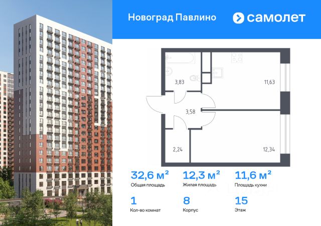 Строим кварталы для жизни с заботой о будущем. Предлагается 1-комнатная квартира комфорт-класса 32,9 кв.м в корпусе 8 на 22 этаже, в ЖК "Новоград Павлино" Квартира без отделки. Доступность опции "отделка" и возможность комплектации мебелью и декором уточняйте у застройщика. Приобрести квартиру возможно по специальным акциям от застройщика, с текущими условиями акций можно ознакомиться в блоке "Акций". Цена динамическая и может отличаться, уточняйте актуальность у застройщика. "Новоград Павлино" находится в 13 км от МКАД рядом с рекой Пехорка и в окружении трех лесопарков - Павлинского, Салтыковского и Ольгинского. Современные монолитно-кирпичные дома с широким выбором квартир. В жилом комплексе представлены разные планировки европейского формата с высотой потолков 2,8 м.