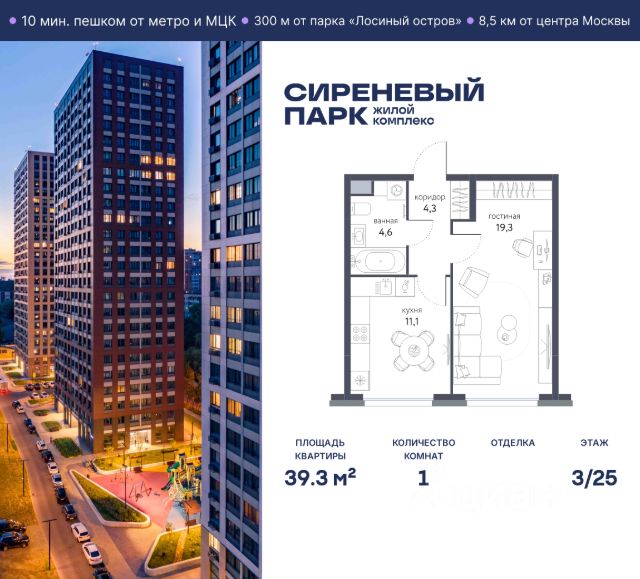 Продаётся просторная 1-комнатная квартира общей площадью 38.1 м² на 16 этаже в новом жилом комплексе "Сиреневый парк", расположенном в Восточном административном округе Москвы на улице Тагильская. Всего 10 минут ходьбы от станции метро "Бульвар Рокоссовского" и одноимённой платформы МЦК. Высококачественное монолитное строительство гарантирует сохранение тепла в доме, а наличие квартир с предчистовой и чистовой отделкой позволяет вам сэкономить время и сразу же переехать в свое жилье после покупки. Благодаря разнообразию планировок вы сможете выбрать идеальный вариант, соответствующий вашим предпочтениям и образу жизни. Предлагаются квартиры: - с просторными кухнями-гостиными, - с нишами для хранения вещей и отдельными гардеробными, - мастер-спальни с собственными санузлами, - большие комнаты с высокими потолками (2,9 м) и с увеличенными безопасными окнами (1,95 м) , которые наполнят ваш дом естественным светом; - с чистовой отделкой по двум дизайн-проектам на выбор; - с остекленными лоджиями и панорамными видами на лес. Каждая деталь в этом доме создана для вашего комфорта: - безбарьерная среда, - бесшумные скоростные лифты, - машиноместа в отапливаемом подземном паркинге и кладовые на -1 этаже с доступом из лифта, - развитая инфраструктура с супермаркетами, кафе, фитнес-клубами, салонами красоты и частным детским садом обеспечивает максимальное удобство жителям. В 300 метрах от ЖК расположен Национальный парк "Лосиный остров". Способы покупки: 100%, Trade-in, Семейная ипотека без наценки, стандартная ипотека. Запишитесь на просмотр в офис продаж и получите свою персональную скидку по акции Назови свою скидку. ЖК "Сиреневый парк" — гармония в деталях, совершенство в каждом моменте. Застройщик проекта - AFI Development.