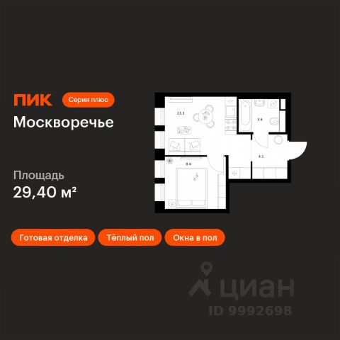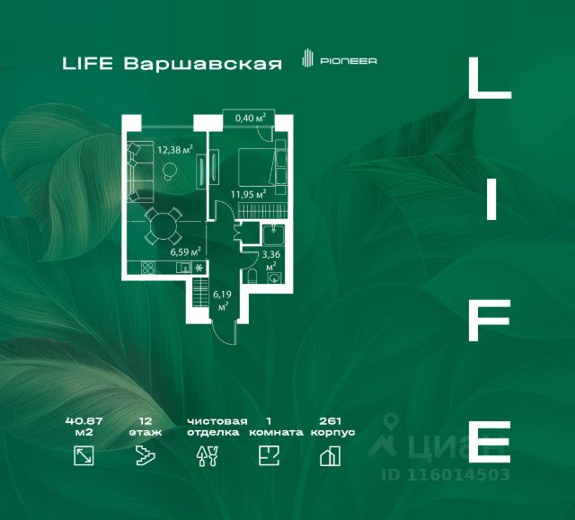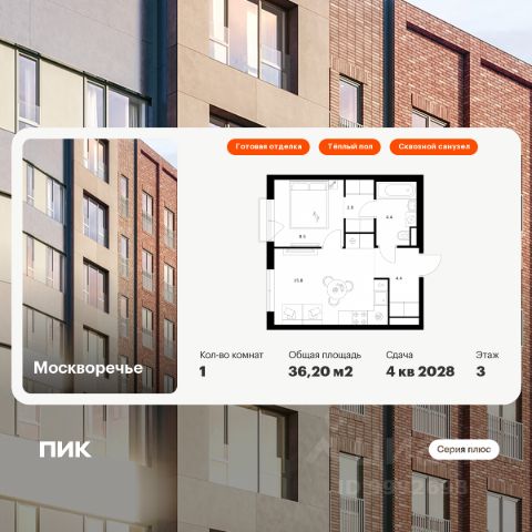 В районе Москворечье-Сабурово продается 1-комнатная квартира площадью 37.89 м². Она расположена на 3 этаже в 261 корпусе нового жилого квартала LIFE Варшавская. Площадь комнат: гостиная — 11,69 м² спальня — 11,14 м² кухня — 6,3 м² ванная — 3,36 м² В LIFE Варшавская мы создали идеальные условия для жизни молодых людей и семей с детьми, тинейджеров и спортсменов, домохозяек и бизнесменов. Жилой квартал LIFE Варшавская удачно расположен: 5 минут до станции "Варшавская" 10 минут до станции "Каширская" 18-25 минут до парка-усадьбы "Коломенское", Битцевского леса и музея-заповедника "Царицыно" Богатая инфраструктура — это визитная карточка проекта. На территории работают детский сад на 160 мест и школа на 900 мест с IT-полигоном и мультифункциональным спортивным стадионом. В квартале разместились пешеходный бульвар, игровой плейхаб "Змейка", спортивный кластер с полями для футбола и волейбола, площадка для выгула животных. На первых этажах жилых домов открыты магазины, кафе и рестораны, салоны красоты, арт-галереи, сервисы бытовых услуг, медицинские центры. Концепция жилого квартала создана ведущими архитектурными бюро. Структуры малоэтажных кварталов дополняются высотными башнями-доминантами. Такой тип застройки позволил сформировать освещенную приватную территорию. Продается 1-комнатная квартира в ипотеку в новостройке в районе Москворечье-Сабурово в Москве.