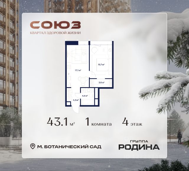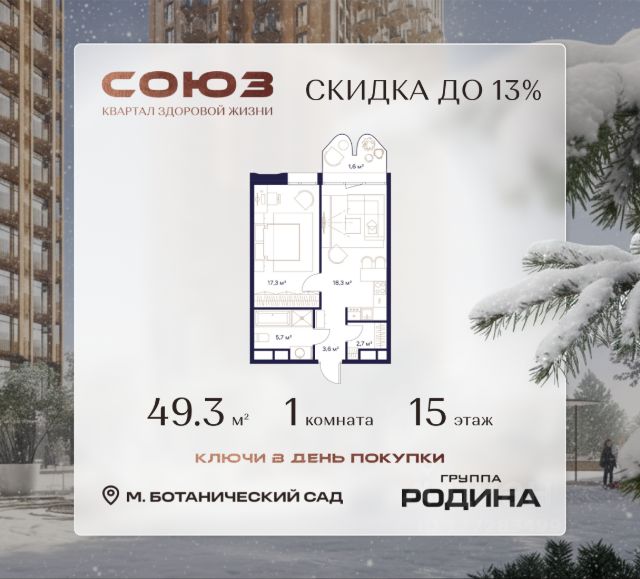 Рассрочка 0% Продаётся 1-комнатная квартира площадью 54.5 м² на 9 этаже в Жилом Комплексе "Союз". Квартал здоровой жизни премиум-класса с рекордным количеством олимпийских видов спорта: - Ледовая арена для хоккея и фигурного катания, - Футбольные поля для тренировок, - Спортивный зал для фехтования, - Бассейн на 6 дорожек, - Центр единоборств, - 4 крытых площадки для настольного тенниса, - 7 теннисных кортов (крытых и открытых), - 4 крытых площадки для сквоша, - Легкоатлетический стадион, - Площадки для баскетбола и волейбола. Уникальные форматы квартир с мастер-спальнями, приватными террасами, балконами, а также пентхаусы с открыточными видами на город. Все квартиры продаются с отделкой Shell&Core и панорамным остеклением. Расположение Пешком: - 2 мин. до парка "Сад Будущего"; - 6 мин. до ст. м. "Ботанический сад"; - 6 мин. до ст. МЦК "Ботанический сад"; - 6 мин. до парка "Леоновская роща"; На автомобиле: - 2 мин. до СВХ (МСД); - 5 мин. до Проспекта Мира; - 10 мин. до ТТК; - 15 мин. до Садового кольца; - 25 мин. до аэропорта "Шереметьево". Благоустройство - собственная спортивная инфраструктура 7 Га; - зона для пикников; - игровые и спортивные площадки для детей всех возрастов; - розарий, а также сосновые, каштановые и дубовые аллеи; - площадки под открытым небом для занятий спортом и йоги; - игровые комнаты для детей; - лаунж-зона для резидентов; - просторная переговорная для деловых встреч; - премиальный ресторан "Шабада" Сосо Павлиашвили с водными арт-объектами на прогулочной аллее, садом ароматных трав и сценой под открытым небом; - кафе, химчистки, аптеки и супермаркеты рядом с домом. Окружение - 8 парков: Сад Будущего, Леоновская роща, Хуамин, Главный ботанический сад РАН, Шереметьевская дубрава, Останкино, парк спорта "Яуза", пойма реки Яуза и музей-усадьба "Останкино"; - 3 ВУЗа: ВГИК, РГСУ, МГПУ; - 12 школ, в том числе: школа 1499 им. И.А. Докукина (топ 100), Brookes Moscow, IThub школа; - 18 детских садов, в том числе билингвальный ALERTUM KIDS; - один из крупнейших океанариумов Европы "Москвариум"; - один из крупнейших в Европе торгово-развлекательных центров "Европолис". 1-комнатная квартира в ипотеку в новостройке в районе Ростокино в Москве.