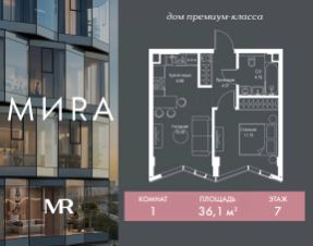 Прямая продажа от застройщика. Продаётся 1-комнатная квартира общей площадью 44.18 м² без отделки в доме премиум-класса МИRА на 9-м этаже 24 этажного дома. Квартира расположена в корпусе 3. Дом премиум-класса МИRA это: • Спокойный район с богатой историей и сложившейся инфраструктурой • Авторская архитектура на стыке классики и современности • Вход в парк прямо из жилого комплекса • Панорамные виды на Яузу, парки, ВДНХ и скульптуру "Рабочий и колхозница" • Удобные сервисы и безопасность для каждого резидента Расположение: Жилой квартал расположен в Алексеевском районе на северо-востоке Москвы, на второй линии домов, таким образом вы сможете дистанцироваться от шума и суеты проспекта Мира, но при этом будете жить недалеко от этой важной городской магистрали. Прямо у дома: • Парк Акведук • Река Яуза • Памятник "Рабочий и колхозница" Пешком: • 16 мин м. ВДНХ На автомобиле: • 12 мин ТТК • 15 мин Садовое кольцо • 12 мин Национальный парк "Лосиный остров" Благоустройство: Концепция благоустройства от бюро "ДРУЖБА" разработана в стиле "Лесная тропа". В уютном дворе расположились словно затерянные в лесу, площадки для отдыха. Они разделяются островками с травами, кустарниками, крупными камнями и деревьями, между которыми проходят узкие песчаные тропинки с деликатной подсветкой по вечерам. Центральной точкой притяжения для жителей станет главная площадь с фонтаном, которая открывается сразу из двух входных групп. Внутренний двор МИRA: • Детская площадка с зонами для игр малышей до трех лет и детей более старшего возраста • Спортивная площадка с профессиональным оборудованием для тренировок • Декоративные перголы • Воздушный арт-объект с подсветкой, похожий на облако • Чайный домик, где в отдельном отапливаемом павильоне можно в любое время года попить кофе с соседями или устроить камерное семейное чаепитие • Зоны для работы и отдыха с гамаком под навесом, скамейками и креслами Инфраструктура и окружение: В Алексеевском районе есть огромные благоустроенные парки, магазины, гимназии с высоким рейтингом и филиалы ВУЗов, частные и государственные детские сады, модные кофейни и фитнес-центры. В квартале МИRА предусмотрены: • 2 ресторана с видом на парк Акведук • 3 кафе • фитнес-студия • подземный паркинг на 330 машино-мест Компания MR предлагает своим клиентам специальные условия приобретения квартир в рамках программ ипотечного кредитования от банков-партнеров.