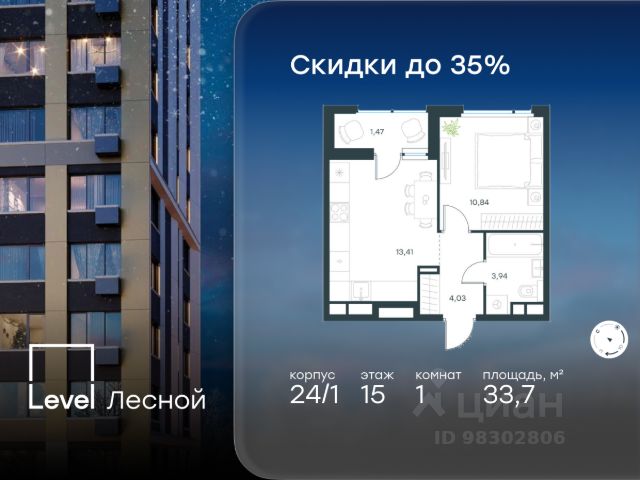 Продается 1-комнатная квартира на 7 этаже из 9, секция 8, в ЖК Riga Hills площадью 44.77 кв.м. ЖК Riga Hills (Рига Хиллс) яркий жилой комплекс бизнес-класса в экологически чистом районе Подмосковья, всего в 12 км от МКАД по Новорижскому шоссе.