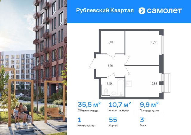 Строим кварталы для жизни с заботой о будущем. Предлагается 1-комнатная квартира комфорт-класса 35,49 кв.м в корпусе 55 на 7 этаже, в ЖК "Рублевский Квартал" Квартира без отделки. Доступность опции "отделка" и возможность комплектации мебелью и декором уточняйте у застройщика. Приобрести квартиру возможно по специальным акциям от застройщика, с текущими условиями акций можно ознакомиться в блоке "Акций". Цена динамическая и может отличаться, уточняйте актуальность у застройщика. Жилой комплекс "Рублевский Квартал" на западе Москвы окружен Подушкинским и Дубковским лесами. Рядом ж/д станция Усово и МЦД-1 "Одинцово". На территории комплекса — школа, детский сад, поликлиника и торговый центр. Архитектура с переменной этажностью от 3 до 12 этажей гармонично вписывается в природу. Закрытый двор-парк, кленовые аллеи и игровые зоны создают уют. Квартиры с отделкой и живописными видами на лес. Купить 1-комнатную квартиру в новостройке в селе Лайково Московской области.