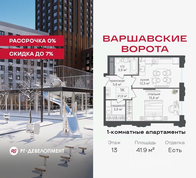 Рассрочка 0% + скидка 5%. Первый взнос 20%, второй — через 6 мес., остаток —до ввода. Продаются 1-комнатные апартаменты 47.0 кв.м. в МФК "Варшавские ворота" на 3-м этаже 30 этажного дома. МФК "Варшавские ворота" — это точка баланса между природой и городом, стилем и функциональностью, жизнью сегодня и устойчивым будущим. Коротко о важном: - 1 минута пешком от м. Аннино; - Удобные выезды на Варшавское шоссе и МКАД; - Высота потолков 2,7 - 3 м; - Закрытый двор-парк; - Школы и детские сады в 10-15 минутах пешком от дома; - Технические лоджии для размещения кондиционеров; - Подземный паркинг; - РГ-Девелопмент — ТОП-20 крупнейших застройщиков Москвы. Проект сочетает в себе современную архитектуру и продуманное благоустройство с уникальным природным окружением. Всего в нескольких минутах от дома — девять парков, каскад прудов и крупнейшие лесопарковые зоны Москвы, создающие ощущение жизни в зеленом оазисе посреди мегаполиса. Архитектурная концепция - стиль Чикаго в Москве. Фасады облицованы вентфасадами под клинкерную плитку. Фасады подчеркивают строгие линии и современный стиль, а входные группы разработаны московским бюро Syntaxis. Лобби оформлены с применением керамогранита, декоративной штукатурки и гипсовых панелей, детали из латуни добавляют изысканности. Проект находится в одной минуте пешком от метро "Аннино", в 12 минутах от станции "Улица Академика Янгеля" и рядом с МЦД-2 "Красный Строитель". Для автомобилистов предусмотрен прямой выезд на Варшавское шоссе и два съезда на МКАД, что позволяет быстро добираться в любую часть города. Среди планировочных решений представлены разнообразные форматы: от функциональных студий до просторных 4-комнатных квартир и апартаментов. Высокие потолки усиливают ощущение простора, а продуманные планировки включают мастер-спальни, гардеробные, угловые окна, объединённые кухни-гостиные и несколько санузлов. Центральное пространство комплекса — закрытый двор без машин. Он разделён на функциональные зоны: детские игровые комплексы, спортивные площадки, воркаут-зоны и уютные места для тихого отдыха. На первых этажах разместятся магазины, кафе и сервисы, что позволит решать повседневные задачи, не покидая территорию комплекса. Для семей с детьми предусмотрен частный детский сад на 50 мест. Подземный паркинг и кладовые обеспечат удобство хранения и безопасность автомобилей. Комплекс окружён девятью парками и лесопарками, каждый из которых обладает своей атмосферой. Выйти на пробежку в Аннинском лесопарке, насладиться прогулками по обширным аллеям в Битцевском лесу, спланировать пикник или велопрогулку в Покровском и Народном парках, любоваться каскадом Кировоградских прудов. Всего в двух станциях — музей-заповедник "Царицыно" с дворцами, фонтанами и живописными пейзажами. Здесь каждый житель найдёт своё любимое место для отдыха. Южное Чертаново - район развитой инфраструктурой, где сочетаются городские удобства и природное окружение. В шаговой доступности находятся школы, дет Продается 1-комнатная квартира в новостройке в районе Чертаново Южное в Москве.