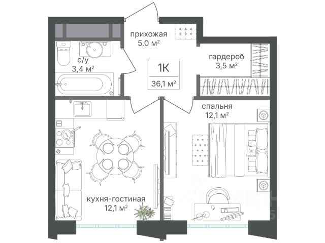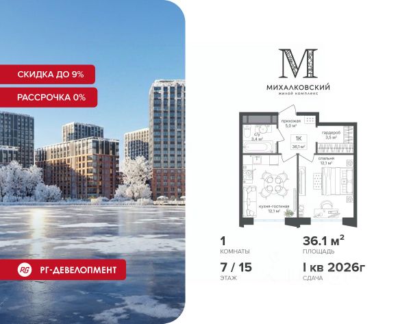 Продаётся 1-комн. квартира площадью 36,8 кв.м на 4 этаже 12 этажного дома (Корпус 1.1.1, Секция 1) проекта ПИК Кронштадтский 9. Светлый просторный подъезд на уровне земли, функциональная планировка, большие окна, предчистовая отделка.