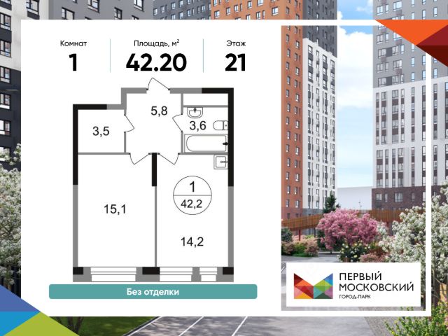 Старт продаж нового корпуса! Продается однокомнатная квартира без отделки в 11 фазе города-парка "Первый Московский". Общая площадь квартиры - 43 кв. м, этаж 1 из 22. Планируемый срок ввода в эксплуатацию - 1 квартал 2029 года. Тип дома - монолитный. 5 корпус состоит из 2 секций: - 1 секция - без отделки - 2 секция - с отделкой White Box Город-парк "Первый Московский" расположен всего в 7 км по Киевскому шоссе от МКАД на территории Новой Москвы. Из города-парка прямой выезд на Киевское шоссе и трассу Солнцево-Бутово-Варшавское шоссе. ТРАНСПОРТНАЯ ДОСТУПНОСТЬ: - 7 мин. на личном автомобиле или 10 мин. на автобусе до станции метро "Филатов Луг" - 10 мин. на автомобиле или 20 мин. на автобусе до станции метро "Рассказовка" или "Саларьево" ПРЕИМУЩЕСТВА 5 КОРПУСА: - живописные виды на Ульяновский лесопарк - входные группы с безбарьерным входом - просторная колясочная в каждой секции - в каждой секции - 3 лифта: 2 пассажирских, 1 грузовой - количество квартир на этаже: 1 секция - 4 квартиры, 2 секция - 5 квартир - на 1-ом этаже в секции 2 расположено коммерческое помещение - на -1-ом этаже каждой секции запроектированы кладовые помещения - обеспеченность машино-местами: гостевой паркинг 48 м/м, многоуровневые паркинги рядом с домом ВНУТРЕННЯЯ ИНФРАСТРУКТУРА И БЛАГОУСТРОЙСТВО: Дома 11 фазы граничат с Ульяновским лесопарком. Вся территория 11 фазы разделена на 2 типа: - приватное дворовое пространство с детскими игровыми и спортивными площадками. Дворы свободны от машин. - прогулочные маршруты с зонами отдыха. Прогулочный маршрут объединяет дома 11 фазы в единое пространство, за счёт оригинальной геопластики создаётся уникальный разноуровневый ландшафтный узор. РАЗВИТАЯ ИНФРАСТРУКТУРА В ОКРУЖЕНИИ: - общеобразовательная школа 2120 корпус ш3 (всего в проекте 5 школ) - детский сад 2120 корпус д4 (всего в проекте 8 детских садов) - школа искусств - поликлиника - торговый центр Столица - кафе, продуктовые магазины, аптеки, фитнес центры, салоны красоты и пр. - в пешей доступности благоустроенный парк Филатов Луг