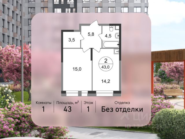 Старт продаж нового корпуса! Продается однокомнатная квартира без отделки в 11 фазе города-парка "Первый Московский". Общая площадь квартиры - 42,2 кв. м, этаж 11 из 22. Планируемый срок ввода в эксплуатацию - 1 квартал 2029 года. Тип дома - монолитный. ТОЛЬКО ДО 31 МАРТА выгодные условия на приобретение квартиры в ипотеку или рассрочку. Звоните - и мы подберем оптимальное предложение под ваш запрос! 5 корпус состоит из 2 секций: - 1 секция - без отделки - 2 секция - с отделкой White Box Город-парк "Первый Московский" расположен всего в 7 км по Киевскому шоссе от МКАД на территории Новой Москвы. Из города-парка прямой выезд на Киевское шоссе и трассу Солнцево-Бутово-Варшавское шоссе. ТРАНСПОРТНАЯ ДОСТУПНОСТЬ: - 7 мин. на личном автомобиле или 10 мин. на автобусе до станции метро "Филатов Луг" - 10 мин. на автомобиле или 20 мин. на автобусе до станции метро "Рассказовка" или "Саларьево" ПРЕИМУЩЕСТВА 5 КОРПУСА: - живописные виды на Ульяновский лесопарк - входные группы с безбарьерным входом - просторная колясочная в каждой секции - в каждой секции - 3 лифта: 2 пассажирских, 1 грузовой - количество квартир на этаже: 1 секция - 4 квартиры, 2 секция - 5 квартир - на 1-ом этаже в секции 2 расположено коммерческое помещение - на -1-ом этаже каждой секции запроектированы кладовые помещения - обеспеченность машино-местами: гостевой паркинг 48 м/м, многоуровневые паркинги рядом с домом ВНУТРЕННЯЯ ИНФРАСТРУКТУРА И БЛАГОУСТРОЙСТВО: Дома 11 фазы граничат с Ульяновским лесопарком. Вся территория 11 фазы разделена на 2 типа: - приватное дворовое пространство с детскими игровыми и спортивными площадками. Дворы свободны от машин. - прогулочные маршруты с зонами отдыха. Прогулочный маршрут объединяет дома 11 фазы в единое пространство, за счёт оригинальной геопластики создаётся уникальный разноуровневый ландшафтный узор. РАЗВИТАЯ ИНФРАСТРУКТУРА В ОКРУЖЕНИИ: - общеобразовательная школа 2120 корпус ш3 (всего в проекте 5 школ) - детский сад 2120 корпус д4 (всего в проекте 8 детских садов) - школа искусств - поликлиника - торговый центр Столица - кафе, продуктовые магазины, аптеки, фитнес центры, салоны красоты и пр. - в пешей доступности благоустроенный парк Филатов Луг