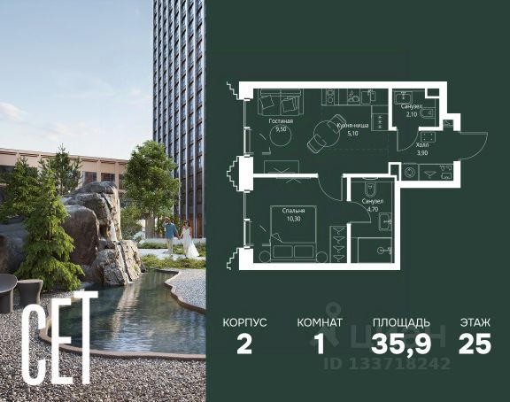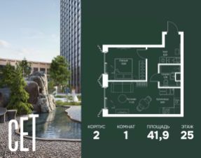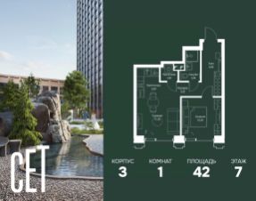 Прямая продажа от застройщика. В ЖК Сет продается 1-комнатная квартира площадью 41 м², расположенная в корпусе 2, на 7 этаже 59 этажного дома. Сет имеет стратегически выгодное расположение в ЗАО, в районе с большой историей и блестящим будущим: между природной зоной долины реки Сетунь и Кутузовским проспектом. В рамках возведения первой очереди предусмотрено три корпуса высотой 18, 45 и 59 этажей. На верхних этажах спроектированы общедоступные смотровые площадки с панорамным обзором на центр столицы. Преимущества проекта: • Функциональные планировочные решения • Контроль проникновения через входную дверь • Система управления освещением и температурой в квартире • Система защиты от протечек с функцией перекрытия воды • Вход в подъезд по биометрическим считывателям Face ID • Скоростные лифты • Двухуровневый подземный охраняемый паркинг на 495 машино-мест Застройка Сет включает в себя не только жилые корпуса, но и инфраструктурные объекты. Все необходимое для повседневного комфорта будет расположено в шаговой доступности: • Фитнес-Клуб с бассейном • Ведущая городская школа, детский сад и школа искусств • Центр культуры и досуга • Медицинский центр • Кафе и рестораны Расположение комплекса: Пешком: • Метро "Давыдково" - 17 минут • Парк "Долина реки Сетунь" - 3 минуты • Открытие новых станций метро в шаговой доступности в будущем Инфраструктура: Разнообразить свой день резиденты Веер смогут также проводя больше времени на свежем воздухе. Двор разделен на 4 зоны разных эмоций и действий, которые пересечены и соединены веерными прогулочными маршрутами: • Спортивная площадка устроена в глубине "Кленовой рощи" • В "Чайном домике" будет создан навес с утеплением для отдыха в любую погоду • Площадки для детей воплотятся в "Волшебный лес" с цветами, зеркалами и световым дизайном • "Центральная площадь" устроена у водного оазиса живописного пруда. На машине: • "Москва-Сити" - 15 минут • Садовое кольцо - 20 минут • ТЦ "Океания" - 8 минут • ТЦ "Времена года" - 13 минут • Сколково - 12 минут • Гребной канал - 17 минут Компания MR предлагает своим клиентам специальные условия приобретения квартир в рамках программ ипотечного кредитования от банков-партнеров.