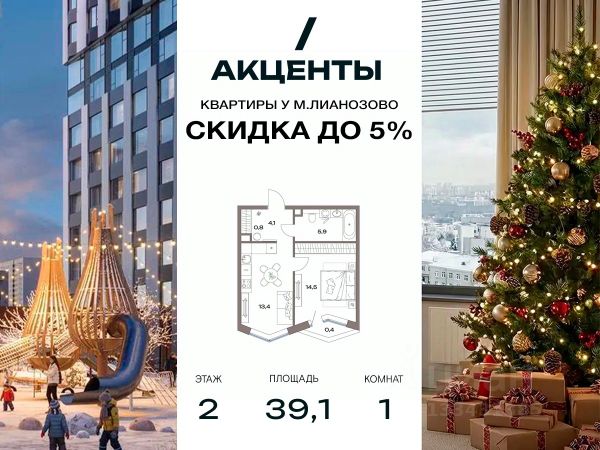 Однокомнатная квартира для пары или начинающего специалиста. -В квартире предусмотрено классическое остекление -Просторная кухня-гостиная с зонированной кухней и зоной отдыха для уютных вечеров -Приватная спальня с зоной гардеробной и рабочим местом -Ниша для системы хранения в коридоре -Наслаждайтесь видами и созерцайте закаты на балконе Молодой район для жизни "Акценты" в классе бизнес-лайт — точка роста на севере Москвы. Он предлагает элегантные и строгие фасадные решения, авторский ландшафтный дизайн, а также функциональные и доступные по цене планировки. Проект находится в семи минутах пешком от станции метро "Лианозово" и одноименной МЦД-1. Добраться до МКАД можно будет за 10 минут на авто, а дорога до центра займет около 20 минут. Жилой комплекс, расположенный в районе Восточного Дегунино, предлагает развитую инфраструктуру для тех, кто ценит выбор. Он имеет удобный доступ не только к транспорту, но и к паркам, школам, садам, больницам и другим социальным объектам. В пешей доступности находятся 4 поликлиники, 5 школ, 6 детских садов, 3 бассейна и баскетбольная академия. Еще рядом есть несколько лесопарков: "Лианозово" с аттракционами и спортивными площадками для тенниса, волейбола и баскетбола, "Останкино" с конным клубом, прудом и пейнтбол-площадками. А "Северные Дубки" — это завораживающее пространство для прогулок под кронами вековых дубов, берез и лип. Кроме того, в районе не будет скучно и юным жителям. Можно оттачивать трюки в скейтпарке "Союз". Ловким и прыгучим советуем записаться в акробатический центр "Белка".