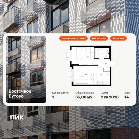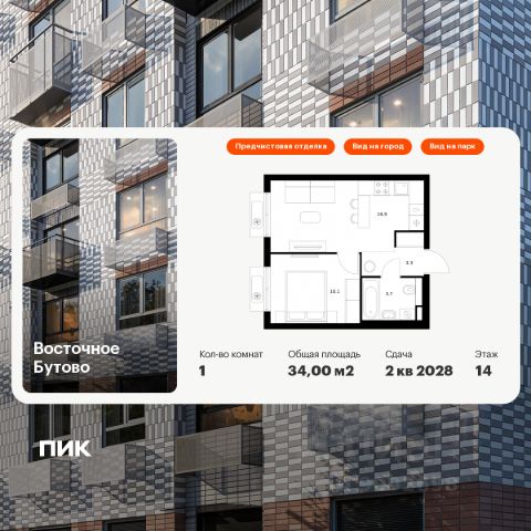Продаётся 1-комн. квартира площадью 32,9 кв.м на 18 этаже 25 этажного дома (Корпус 55, Секция 1) проекта ПИК Восточное Бутово. Светлый просторный подъезд на уровне земли, функциональная планировка, большие окна, предчистовая отделка. Жилой квартал "Восточное Бутово" расположен в 5 км от МКАД по Симферопольскому шоссе, в Ленинском районе Московской области. Это экологически благоприятное место по соседству с Бутовским лесопарком. В 25 минутах на машине - станции метро и МЦД "Бутово". В "Восточном Бутово" уже открылись пять детских садов из десяти запланированных и одна школа из четырёх. Внутри квартала будет две поликлиники, одна из которых уже работает. В проекте два пешеходных бульвара - по одному из них уже можно гулять и кататься на велосипеде. В закрытых дворах-парках не будет автомобилей - мы построим многоуровневый паркинг, чтобы сделать район ещё более комфортным и безопасным для жителей. Артикул 1044262 (Застройщик ООО "Лотан") 1-комнатная квартира в новостройке рядом с метро Бульвар Дмитрия Донского.