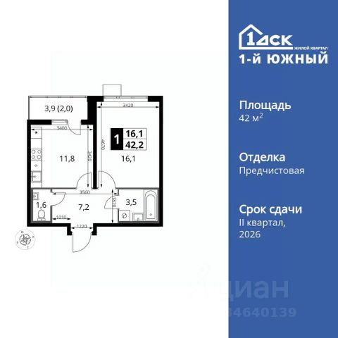 Продаётся с кладовой. Квартира с кухней-гостиной и одной спальней в "Первом квартале". Особенности планировки: без отделки, двухуровневая, терраса, балкон, терраса на крыше. Квартиру можно купить онлайн. В квартире выполнена отделка "под чистовую". Установлены окна с двойным стеклопакетом, радиаторы отопления с терморегуляторами. На полу цементно-песчаная стяжка. В квартиры заведены кабели для интернета и ТВ. Входная сейф-дверь не требует замены. Организован поквартирный учёт энергоресурсов (водоснабжение, отопление, электричество). Дом сдается во 2 квартале 2024 года. Проект "Первый квартал" строится в подмосковном городе "Видное" 6 км от МКАД. Рядом с проектом находится остановка общественного транспорта. Маршрутные такси едут до станций метро "Домодедовская", "Кантемировская", "Аннино". От ж/д ст. "Расторгуево" 30 минут до центра Москвы. Застройщик компания Брусника. Собственная инфраструктура "Первого квартала" включает в себя общеобразовательную школу, детский сад, а также магазины, предприятия услуг и офисные помещения, располагающиеся на первых этажах зданий. В шаговой доступности находятся: четыре школы, Видновская гимназия, начальная школа "Созвездие", супермаркеты "Пятерочка", "Перекресток" и "Виктория", рынок "Красный камень", бассейн "Дельфин". Объявление от застройщика. Ипотека, материнский капитал, военная ипотека. Обмен (или Trade-in) — один из способов. Обмен подойдёт, если вы хотите поменять старую квартиру на новую с большей или равной площадью. Получить одобрение ипотеки или рассрочку, а также осуществить обмен квартиры можно онлайн. Запишитесь на онлайн презентацию по телефону или на сайте. ОБЪЯВЛЕНИЕ ОТ ЗАСТРОЙЩИКА. Покупка квартиры защищена банком. Квартиру можно купить онлайн. ЖК "Первый квартал" расположен в городе Видное Московской области. Это 6 домов переменной этажности от 5 до 14 этажей с закрытыми дворами без машин, детскими и спортивными площадками. Проект застройщика Брусника находится в Ленинском районе в 6 км от МКАД, рядом с Ермолинским парком и рекой Купелинка. До аэропорта Домодедово около получаса езды на автомобиле. В районе уже сформированная инфраструктура: четыре детских сада, две школы, торговые центры, продуктовые магазины, остановки общественного транспорта. Рядом с ЖК "Первый квартал" находится конечная остановка маршрутных такси. От неё можно добраться до четырех станций метро — "Домодедовская", "Орехово", "Аннино", "Красногвардейская", и железнодорожной станции "Расторгуево". В проекте развития территории — строительство отдельного выезда на М4 Дон. В перспективе в жилом районе будет собственный детский сад, школа, поликлиника и два крытых паркинга. Вблизи "Первого квартала" — два развитых жилых района: микрорайон "Купелинка", ЖК "Эко Видное", ЖК "Видный". 1-комнатная квартира в ЖК "Первый квартал" в Видном — это квартира с объединённой кухней-гостиной и отдельной спальней. Однокомнатная может быть укомплектована тёплой лоджией, где удобно разместить рабо Продается 1-комнатная квартира в новостройке рядом с метро Царицыно.