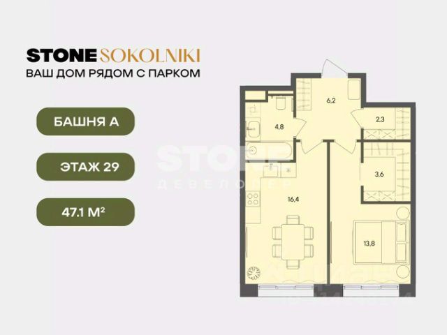 Старт продаж квартир в ЖК STONE SOKOLNIKI от девелопера STONE. В продаже студия правильной формы для реализации любого дизайн-решения, идеально подходящая как студентам, так и молодым парам, которые только планируют создать свой семейный очаг. Современная архитектура проекта органично вписана в городскую среду. Концепция проекта разработана архитектурным бюро WALL Проект состоит из трех разновысотных башен высотой в 33, 28 и 24 этажа с чистой геометрией и увеличенной площадью остекления, которая позволит насладиться городской панорамой и видами на парк "Сокольники". Транспортная доступность - 10 мин. пешком до метро и БКЛ "Сокольники" и "Электрозаводская" - 12 мин. пешком до парка Сокольники - 10 мин. пешком до станции МЦД-3 "Митьково", которая позволит комфортно добираться в центр города и за его пределы Инфраструктура: В каждой входной группе предусмотрены помещения для временного хранения велосипедов, лапомойка, гостевой санузел, а также комната матери и ребенка. А колясочные появятся на каждом этаже - ведь это самое удобное решение для детей и их родителей. Планировочные решения: Планировки квартир в STONE Sokolniki создавались с учетом разнообразия современных сценариев жизни в городе. В проекте предусмотрены просторные кухни-гостиные, изолированные спальни с мастер-блоком, планировки для семей со взрослыми детьми, с двумя детьми разных возрастов. Благодаря грамотному зонированию квартир можно насладиться и временем с семьей, и уединением или, наоборот, устроить вечеринку вместе с друзьями. - Квартиры от 28 до 135 кв. м. Детский сад во дворе дома: Девелопер STONE осуществляет самостоятельный поиск оператора для детского сада, так как курирует наполнение проекта. На этапе финальной готовности будет выбран лучший оператор, отвечающий запросам качества и цены. Во всех своих проектах девелопер берет на себя ответственность за сдачу части помещений. Удобное хранение: В проекте STONE Sokolniki предусмотрена максимальная обеспеченность кладовыми. Хранения велосипедов в подземном паркинге возможно в зимний период, а летом будет организовано временное хранение на улице. Колясочные есть на каждом этаже всех трех жилых башен. - Колясочные на этаже - Кладовые для хранения Безопасная собственная территория дома, сим и паркинг: Внутри двора комфортно перемещаться пешком, все въезды в паркинг организованы по внешнему периметру. Велосипеды, самокаты и электросамокаты, детские беговелы и коляски - в приоритете, для всех колесных видов транспорта продуманы удобные маршруты движения и варианты хранения в разные сезоны. STONE - девелопер коммерческой и жилой недвижимости классов бизнес и премиум в Москве с 19-летним опытом. С 2022 года занимает лидирующую позицию на офисном рынке (рейтинг РБК). Сегодня в портфеле девелопера представлено 3 млн кв. м построенных, строящихся и проектируемых объектов, из которых более 1 млн кв. м находятся в стадии строительства. Компания имеет самый масштабный проектный портфель офисной недвижимости класса А на московско Продается 1-комнатная квартира в новостройке рядом с метро Электрозаводская.