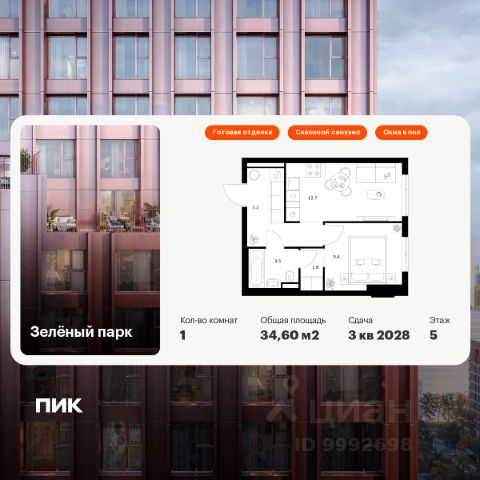 Продаётся студия в сданном доме (Парковый бульвар, 3к2), срок сдачи: IV-кв. 2023, общей площадью 32.3 кв.м., на 10 этаже. Продаётся квартира в ЖК "Зеленоградский"