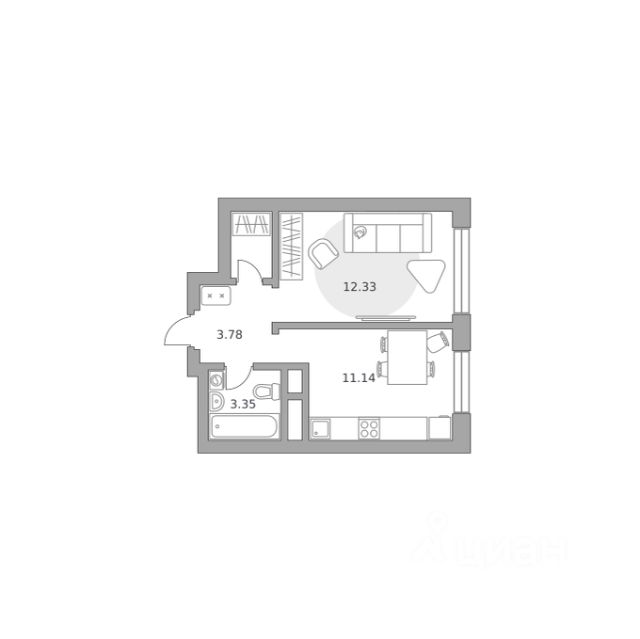Продаётся 1-комнатная квартира 1498, площадью 32,50 м², на 18 этаже в ЖК "Ильинойс" корпус 3. Стоимость — от 8527954 руб. Квартира без отделки, планировка односторонняя, окна на улицу.