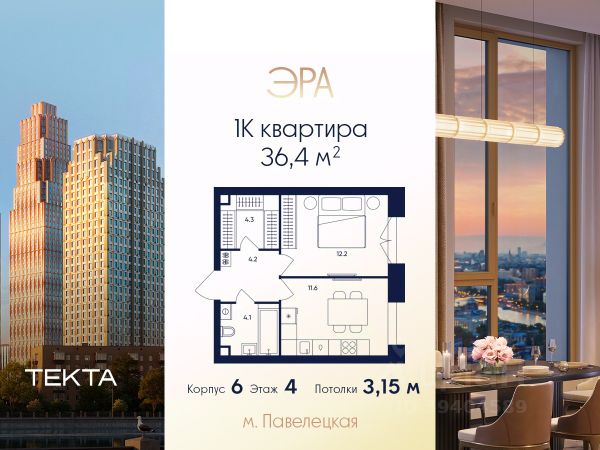Рассрочка 0% с платежом от 250 000 ₽ в месяц. 1-комн. квартира в ЖК "ЭРА" на 11 этаже в 37 этажном здании Корпус 6. Общая площадь: 37.4 кв.м., жилая: 12.50 кв.м. Высота потолков 3.15 м. Современный премиум-квартал ЭРА на Дербеневской набережной, формирующий новый архитектурный облик Даниловского района Москвы. Жилой комплекс из шести высотных корпусов выполнен в актуальной интерпретации стиля ар-деко, где ритмичные линии фасадов, натуральный мрамор и изысканные орнаменты создают гармоничный и запоминающийся образ. ЭРА предлагает жителям единый просторный закрытый двор. Инфраструктура двора включает разнообразные детские игровые площадки, зоны для занятий спортом, а также места для спокойного отдыха — в всесезонном зеленом лабиринте или яблоневом саду. Для озеленения территории планируется высадка около 3000 деревьев и кустарников. Их сохранность обеспечат система автополива, а для комфорта в холодное время года малые архитектурные формы будут оборудованы подогревом. Вторая очередь комплекса включает три корпуса высотой от 37 до 52 этажей. Впечатляющие входные группы, разработанные бюро ХААСТ, встречают жителей потолками 8,8 метров. В лобби создана атмосфера уюта благодаря индивидуальной ароматизации и музыкальному сопровождению. Здесь же обустроена кофейная зона с профессиональной кофемашиной, а для дополнительного удобства установлен постамат. Высокий стандарт чистоты в любое время года обеспечивают роботы-уборщики, что подчеркивает технологичность комплекса ЭРА. Для комфортного подъезда такси перед каждым корпусом предусмотрены специальные зоны подачи машины и высадки пассажиров. Подземный паркинг на 285 мест. Ключевое преимущество — превосходная локация в развивающемся районе с готовой инфраструктурой. Всего в 5 минутах от Садового кольца, в шаговой доступности от Замоскворечья и набережной Москвы-реки, вы сможете наслаждаться динамикой городской жизни. При этом в самом комплексе на первых этажах будут работать кафе, магазины, салоны красоты и детские образовательные пространства. ЭРА — это гармоничный симбиоз статусного адреса, безупречного сервиса и приватности для жизни вашей мечты.
