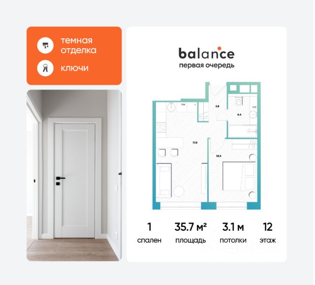 готовая квартира с ключами и ремонтом. продаётся готовая 1-комнатная квартира с увеличенной высотой потолка (3,1 м) на 12 этаже в жк balance balance находится на улице окская, 7 А это ювао, и это круто. вот почему. ювао один из развитых районов москвы, где активно идет редевелопмент: строятся новые кварталы с инфраструктурой и современной архитектурой. путь от 1-ой очереди balance до метро окская займет всего 5 минуты пешком, а до метро рязанский проспект 4 минуты на транспорте. рядом несколько автобусных остановок. за полчаса можно добраться до центра москвы или парков кузьминки, кусково. balance жилой квартал, продуманный до деталей: в каждом корпусе предусмотрено лобби с коворкингом. представь: спускаешься с утра на лифте - и все, больше ехать никуда не надо: выбираешь стол, за которым сегодня работать, подключаешься к вай-фаю - и готово. на первом этаже отдельные помещения для хранения детских колясок и велосипедов. между квартирами светлые холлы. керамогранитный пол, энергоэффективная подсветка и цветовые акценты. никакой монотонности. на территории зеленые супер-дворы со спортивными площадками, детскими зонами и пространством для отдыха. в центре кварталов расположится благоустроенный парк с фонтаном и удобной уличной мебелью. все квартиры 1-ой очереди balance с отделкой. выбрать нужно только цвет — светлый или темный. в комнатах натяжной потолок, ламинат, покрашены стены, установлены светильники, радиаторы, розетки и выключатели. в санузлах керамогранит, сантехника, полотенцесушители. Продам 1-комнатную квартиру в новостройке рядом с метро Кузьминки.