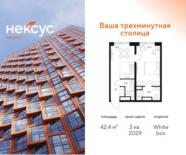 Продажа от застройщика. О проекте: В основе Несус Аквилон лежит принцип трехминутного города, где вся жизнь: работа, отдых, здоровье, общение и культура сосредоточены в шаговой доступности. Он не просто экономит время, а кардинально перераспределяет его. В этих условиях главным логистическим узлом становится лифт, который в считанные секунды переносит из квартиры в собственный фитнес-рум, панорамный двор или современный коворкинг. Здесь вы сами решаете: оказаться в эпицентре событий, чувствуя пульс мегаполиса, или наслаждаться тишиной и приватностью своего пространства. И главное — вы можете переключаться, находя идеальный баланс каждый день. Несус Аквилон - ваша трехминутная столица! Транспортная доступность Несус Аквилон дарит независимость от расстояний и логистики. Ваше время теперь принадлежит только вам меньше минуты до метро Молодежная 2 минуты до Рублевского шоссе 10 минут до Проспекта Багратиона 15 минут до Москва-Сити 10 минут до МКАД 20 минут до ТТК Архитектура 46-этажная башня станет новой архитектурной доминантой, символизирующей динамику и технологичность современной жизни.Комбинация алюминиевых кассет, стеклофибробетона и витражного остекления фасада создает монументальную оболочку, а теплая цветовая гамма добавляет масштабной форме визуальной теплоты. Три разных по характеру стороны башни — от строгой "зубчатой" геометрии до живописных эркеров — создают многогранный, ритмичный образ, дополняемый невесомыми балконами со стеклянным ограждением. Архитектура проекта живет в диалоге с городом: променад вдоль парящего стилобата со стрит-ретейлом становится естественным продолжением общественного пространства. Планировки в концепции Разумные метры Мы создали квартиры, где пространство работает на ваш комфорт. В основе концепции "Разумные метры" правильная геометрия помещений и тщательно продуманные эргономичные решения. - Высота потолков до 3,55 метров - Многообразие планировок: от студий до четырехкомнатных квартир классического и евро-формата - Многофункциональные пространства: кухни-гостиные для приема гостей и зонированные мастер-спальни - Продуманная инфраструктура быта: отдельные постирочные и гостевые санузлы - Удобные системы хранения: встроенные ниши и гардеробные зоны - Уникальные форматы: пентхаусы, комнаты с двумя окнами, угловое панорамное остекление - Возможность открытия окон на всех высотах Для студий и однокомнатных квартир мы предлагаем готовое решение — отделку White box, позволяющую сразу приступить к чистовому ремонту на ваш вкус. Для остальных планировок предусмотрена черновая отделка, чтобы воплотить все интерьерные пожелания. Здесь пространство адаптируется под ваш образ жизни, а не вы подстраиваетесь под планировку. Приватное благоустройство Скрытый на виду панорамный двор-терраса, расположенный на высоте 7 метров, объединил внутреннюю камерность и внешнюю динамику городской жизни. - Многоуровневое озеленение с всесезонными композициями, сохраняющими декоратив