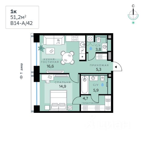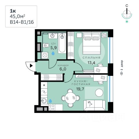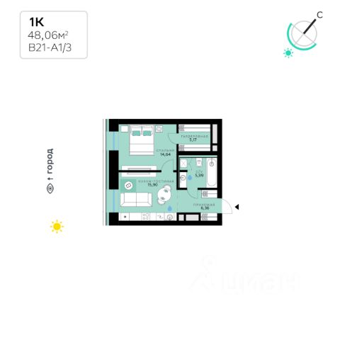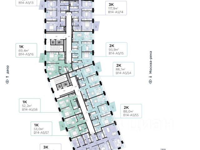 В продаже — однокомнатная квартира, общей площадью 52,1 кв. м. Квартира расположена на втором этаже десятиэтажного корпуса Оптимум в квартале В14 нового района СберСити, который строит Сбер. Архитектуру корпусов квартала разработало итальянское бюро. В облике отражена природная палитра: фасады выполнены в тёплой гамме и отличаются геометричной сеткой объёмных элементов светло-бежевого оттенка. За ними скрываются вставки с текстурой под дерево, создающие игру света и тени. Из окон открываются виды на парк и реку, а всего в трёх минутах пешком — набережная. В14 примыкает к главному парку СберСити. В квартале — уютные дворы без машин с крупномерными растениями, кустарниками, многолетними цветами, детскими площадками и зонами отдыха. Дом возводится по технологии монолитного строительства. Фасады отделаны крупноформатными панелями из стеклофибробетона с фактурой натурального камня и HPL-панелями под дерево. В квартирах предустановлена система "умный дом", связывающая квартиру, дом и прилегающую территорию. Можно регулировать климат и освещение голосом или со смартфона, установлена защита от протечек. Повышенная шумоизоляция и двухкамерные стеклопакеты с алюминиевым профилем обеспечивают комфорт и тишину. В санузлах установлен тёплый пол. В доме предусмотрены: уютное лобби, общественная терраса, детская игровая комната на первом этаже, лапомойка, колясочная и велосипедная комната на первом этаже, подземный паркинг. СберСити — это новый жилой и деловой район на западе Москвы, в одном из самых экологически чистых и престижных мест столицы. Это первая в России и крупнейшая в мире инновационная городская среда, созданная по международным стандартам зелёного проектирования. Здесь внедряются решения в области энергоснабжения, вакуумного мусороудаления, тестирования зелёных технологий, а в дальнейшем — системы искусственного интеллекта для управления домами и городской инфраструктурой. Строительство проекта началось в 2021 году, заселение первых корпусов — с лета 2024-го. Общая площадь территории — 461 га, из них более 2,5 млн кв. м жилья и около 833 тыс. кв. м офисных пространств. Будет построено 7 школ, 13 детских садов и 2 поликлиники. В СберСити будут жить 65 тыс. человек и работать 70 тыс. Развитием территории занимается АО "Рублёво-Архангельское", входящее в группу Сбер. СберСити — место, где хочется жить, работать и растить детей. Переезжайте в СберСити!
