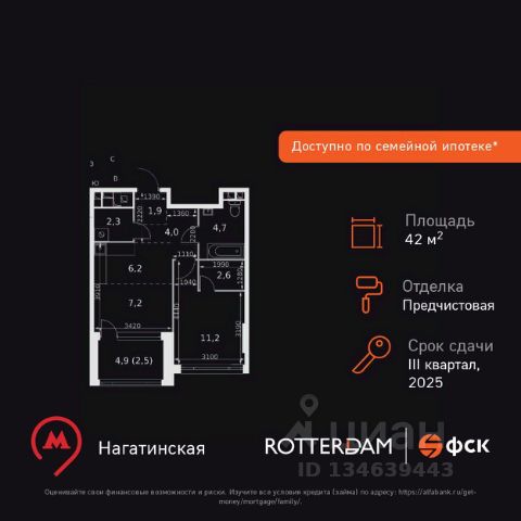 Продаётся 1-к квартира номер 347 общей площадью 42 кв.м. на 22-м этаже 28 этажного здания. Отделка Whitebox. Цена с учётом скидки.