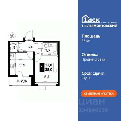 Прямая продажа от застройщика! Жилой Комплекс класса Комфорт Плюс. Продаётся 1-к квартира номер 567 общей площадью 38 кв.м. на 11-м этаже 24 этажного здания. Предчистовая отделка. Цена с учётом скидки. Особенности квартиры: - Организуем показ в удобное для вас время! - Просторная спальня, в которой можно разместить большую кровать. - Линейная планировка - максимальная функциональность и удобство. - Увеличенная ширина окна/окон - больше света и визуального простора. - Линейная кухня - функциональность и практичность в одном решении. - Кладовая - дополнительное пространство для хранения. - Лоджия - уютное место для отдыха и тишины. Квартира с предчистовой отделкой. Вам не придется заниматься черновыми и трудоёмкими работы, а чистовую отделку и дизайн - сделайте на свой вкус. Информация о комплексе: "1-й Лермонтовский": современные подъезды, двор без машин и подземный паркинг. ЖК гармонично вписан в зелёное окружение Люберецкого парка и Жулебинского лесопарка, гранича с развитыми районами Некрасовка и "Красная Горка". Удобная транспортная доступность и активный отдых на природе создают баланс между спокойствием и динамикой городской жизни. Транспортная доступность: В шаговой доступности ж/д станция "Люберцы-1". 5 минут на автомобиле до станций метро "Некрасовка", "Котельники", "Лермонтовский проспект" Внутренняя инфраструктура: На территории комплекса создана безбарьерная среда для свободного перемещения. Здесь есть всё для активного отдыха и спокойного времяпрепровождения: игровые площадки для детей, зоны воркаута, спортивные комплексы и пешеходные аллеи. В шаговой доступности: 4 школы, 7 детских садов, спортивные и танцевальные секции, поликлиники, а также магазины включая "Ашан" и крупные ТЦ. Идеальная инфраструктура для комфортной жизни. Квартира с предчистовой отделкой - ваш дизайн без черновых работ