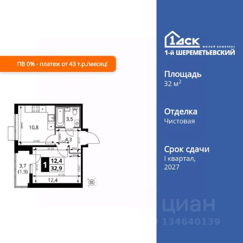 Продается однокомнатная квартира в жилом комплексе комфорт класса "Химки Тайм" площадью 39 кв.м на 14 этаже 20 этажного дома. Квартира с полной отделкой, окна выходят на улицу. Прекрасный выбор для первой квартиры или инвестиций. Комфортные квартиры по комфортной цене! • Скидки на квартиры до 17% (стоимость квартиры в карточке указана с учетом скидки). • Семейная ипотека без дополнительных комиссий • IT ипотека без дополнительных комиссий • Квартиры "под ключ", сдаются с чистовой отделкой, в светлых и темных тонах на ваш выбор. • Точечная застройка с готовым ремонтом: выбирайте дом, где слышно птиц, а не стройку. Живите ДОМА, а не на стройплощадке. • Бесплатный наземный паркинг грамотное планирование потоков машин и пешеходов позволяют сделать дом удобным для всех. Не нужно переплачивать за подземный гараж. • Прекрасный выбор для первой квартиры или инвестиций. В 20252027 недалеко будет запущен Индустриальный парк "Молжаниново" технологичный объект, который станет еще одним катализатором развития района, предоставит рабочие места высококвалифицированным специалистам и подстегнёт спрос на покупку и аренду квартир. Успейте вложиться по выгодной цене. До центра Москвы на учебу, работу и по любому поводу — это быстро! • 5 мин пешком до скоростной линии МЦД-3 "Молжаниново". • От 30 мин на автобусе или маршрутке до ст.м. "Сходненская", "Речной вокзал". Остановка общественного транспорта "Филино" около ЖК. • На автомобиле удобный выезд на Ленинградское шоссе: до центра Москвы — 40 минут, до международного аэропорта Шереметьево — 20 минут. В состав чистовой отделки входит всё, что нужно для комфорта. Вкладывайте в себя и в детей, а не в ремонт! • Выравнивание полов, стен и потолков • Покрытие полов ламинатом • Поклейка обоев • Монтаж натяжных потолков с установкой светильников • Установка межкомнатных дверей • Установка радиаторов отопления • Выкладывание плиточного "фартука" на кухне • Установка водопроводных и канализационных труб в "мокрой зоне" на кухне • Укладывание плитки в ванной комнате • Установка сантехники • Установка счетчиков • Разводка электросети • Монтаж розеток, выключателей Архитектура на многие десятилетия! • Дома строятся по монолитной технологии с вентилируемыми фасадами. В квартирах будет комфортный микроклимат в любой сезон, а корпуса сохранят достойный внешний вид в течение долгого времени. • В каждом корпусе один подъезд и 3 лифта это не человейник. • В каждом подъезде есть отдельная комната для хранения спортивного оборудования. Инфраструктура на территории качественный дом с понятной "начинкой". • На первых этажах расположатся магазины, салоны красоты и кафе • Внутри ЖК будет муниципальный детский сад • 2 спортивные площадки • 2 площадки для отдыха взрослого населения • 4 детские игровые площадки Собственный паркинг ваша машина около вашего дома. • В ЖК своя бесплатная наземная автостоянка на 210 машиномест Окружение выбирайте ЖК, где всё го