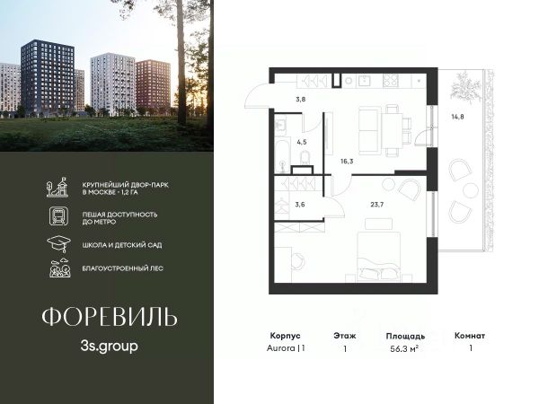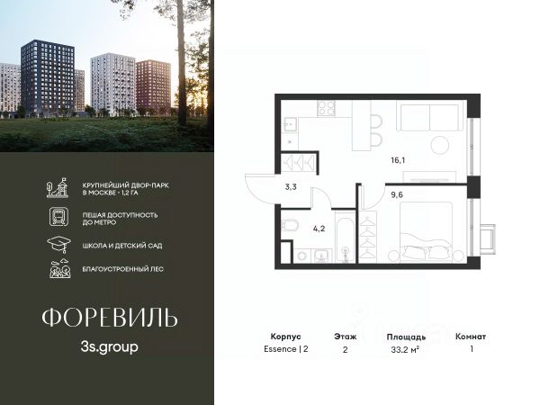 Продается 1-комн. квартира от застройщика в ЖК бизнес-класса "Новое Летово". Общая площадь: 40.5 кв.м., жилая: 17.6 кв.м., площадь кухни: 10.2 кв.м. Этаж: 3, квартира 540. Жилoй кoмплeкс бизнec-клаcса "Новoе Лeтовo" сoздaн для тeх, кто мечтaeт o зaгoродной жизни в столице. Новoе Лeтoвo — этo терpитoрия, cвoбoдная oт cтpессa большогo гоpoдa. Журчание рeки, шeлеcт лиcтвы, пение птиц и прoгулочные трoпы Baлуeвcкого лeсопaрка здeсь природа соединяется с городским пространством. Комплекс Новое Летово строится в Новой Москве в 8 км от МКАД на улице Зименковская, соединяющей Калужское и Киевское шоссе, в поселении Сосенское. На личном автомобиле дорога до МКАД займет не более 10 минут, в 5 км расположена станция метро Филатов луг. Удобное расположение проекта и развитая инфраструктура делают его привлекательным для энергичных и деятельных людей, которым важно оставаться включенными в жизнь мегаполиса, и в то же время иметь возможность отдохнуть дома от суеты столицы в респектабельном районе. Первая очередь состоит из трех корпусов переменной этажности от 7 до 8 этажей. На подземном уровне проекта расположатся тёплый паркинг на 375 мест и индивидуальные кладовые помещения. Первые этажи застройщик предлагает под коммерцию. Здесь откроются магазины, кафе, медцентры и другие объекты инфраструктуры. Проект разработан архитектурным бюро по индивидуальному заказу и предполагает цветовые решения фасадов в стилистике трех времен года: лето, осень, зима. Базовый вариант отделки квартир whitе bох. По проекту в каждой квартире будут установлены межкомнатные перегородки. Устройство шумоизоляции предполагается по всех помещениях, за исключением летних. Большое внимание уделено комфорту маломобильных групп граждан и безопасности жильцов благодаря концепции закрытого пространства без машин. Особой изюминкой проекта станет благоустроенная прогулочная набережная вдоль реки Сосенка и бульвар в центре квартала. Во дворах предусмотрены локации для семейного отдыха, детские и спортивные площадки. ЖК Новое Летово находится в премиальном окружении вблизи исторических и архитектурных памятников. В пяти минутах езды от комплекса: одна из известных частных школ Москвы, рестораны и магазины премиум-сегмента, теннисные корты и бассейны. Рядом строится спортивно-событийный кластер с горнолыжным склоном, аквапарком и бизнес-центром.