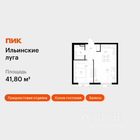 В продаже — однокомнатная квартира, общей площадью 42,3 кв. м. Квартира расположена на втором этаже десятиэтажного дома класса Оптимум в квартале В17 нового района СберСити, который строит Сбер. Всего в доме — 55 квартир. Квартал В17 — современная интерпретация голландской архитектуры. Каждый корпус имеет индивидуальный облик. В домах класса Оптимум используется лаконичная крупноформатная облицовка стеклофибробетоном и декоративными металлическими панелями. На верхних этажах расположены квартиры с панорамным остеклением и террасами, с которых открываются виды на город, парки и бульвар. Установлены двухкамерные стеклопакеты с алюминиевым профилем и скрытыми створками. В квартирах предустановлена система "умный дом" — комплекс решений, объединяющий квартиру, дом и прилегающую территорию. Жильцы смогут регулировать климат и освещение голосом или со смартфона, установлена защита от протечек. В доме расположены: • уютное лобби, • коворкинг, • общественная терраса, • детская игровая комната, • лапомойка, • колясочная и велосипедная комната на первом этаже, • подземный паркинг. Квартал В17 состоит из шести корпусов переменной этажности (от 1 до 10 этажей) и 491 квартиры. Корпуса объединены общей подземной частью, где расположен паркинг на 309 автомобилей, места для мотоциклов и более 400 кладовых помещений. Во дворах созданы приватные благоустроенные пространства с ландшафтными композициями, детскими и спортивными площадками, зоной для йоги, прогулочными маршрутами и местами отдыха. Рядом расположен детский сад, парк и набережная Москвы-реки. СберСити — это новый жилой и деловой район на западе Москвы, в одном из самых экологически чистых и престижных мест столицы. Это первая в России и крупнейшая в мире инновационная городская среда, созданная по международным стандартам зелёного проектирования. Здесь внедряются решения в области энергоснабжения, вакуумного мусороудаления, тестирования зелёных технологий, а в дальнейшем — системы искусственного интеллекта для управления домами и городской инфраструктурой. Строительство проекта началось в 2021 году, заселение первых корпусов — с лета 2024-го. Общая площадь территории — 461 га, из них более 2,5 млн кв. м жилья и около 833 тыс. кв. м офисных пространств. Будет построено 7 школ, 13 детских садов и 2 поликлиники. В СберСити будут жить 65 тыс. человек и работать 70 тыс. Развитием территории занимается АО "Рублёво-Архангельское", входящее в группу Сбер. СберСити — место, где хочется жить, работать и растить детей. Переезжайте в СберСити!