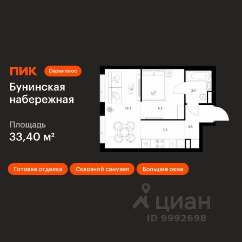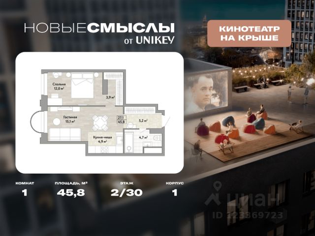 В жилом комплексе, расположенном по соседству с ландшафтным парком "Южное Бутово", продается 1-комнатная квартира площадью 50.00 кв. м. без отделки. Квартира расположена на 12 этаже 1 корпуса в жилом квартале комфорт-класса "Новые Смыслы" (ГК Unikey/Юникей). Доступная и удобная локация: - 10 минут ходьбы до станции метро "Потапово". - 25 минут ходьбы до станции метро "Бунинская аллея". - 15 минут на авто до Калужского шоссе. - 20 минут на авто до МКАД. - 30 минут на машине до аэропортов "Внуково" и "Остафьево". Продуманный архитектурный проект: - Разноуровневые секции с эстетичные башнями и контрастными цветовыми сочетаниями, напоминающими башни в Сити. - Сказочные виды из окон на современный район столицы. - Авторские планировки с потолками в 3 метра, просторными кухнями-гостиными и мастер-спальнями. - Комфортные бесплатные общественные пространства. - Подземный паркинг с прямым доступом на лифте. - Настоящий лес с живописными пейзажами и прудом прямо во дворе. Расположение Комплекс "Новые Смыслы" расположится в благоприятном районе Новой Москвы - Коммунарка. Зеленое окружение, богатая инфраструктура развивающегося района - все это сформирует особое пространство для комфортной жизни, наполненной смыслом. 10 минут на велосипеде - и вы в ландшафтном парке "Южное Бутово" или сквере у Потаповских прудов. Чуть дальше расположен Бутовский лесопарк. В окружении "Новых Смыслов" вы найдете все необходимые социальные объекты. В двух шагах от дома находится 5 школ, более десятка детских садов, секции для занятий малышей и подростков, частные клиники, супермаркеты, рестораны, студии красоты и фитнес-центры. За 12 минут на авто вы доберетесь до ледовой арены, комплекса "Спорт Станция" и спа-центра "Termoland". Внутренняя инфраструктура Для жителей "Новых Смыслов" будут созданы бесплатные общественные пространства: - Деловая гостиная с эстетичным коворкингом и переговорными. - Гостиная для души и тела, включающая фитнес-зону с тренажерами и пространства для стретчинга, йоги и медитаций. - Гостиная детства, где дети будут играть и развиваться под присмотром тьютора. - Кино-гостиная - кинотеатр на крыше одного из домов, предлагающий разнообразную программу. - Прачечная, работающая только для жильцов. Вместе с корпусами комплекса на территории запланировано строительство детского сада. На первых этажах корпусов откроются кофейни, пекарни, сервисы быта и пункты доставки. Благоустройство Чтобы отдохнуть от суеты города, достаточно выйти во двор: здесь раскинулся настоящий лес с живописными пейзажами. В тени деревьев жителей ждут пруд с мостиком и беседкой на берегу, тихие прогулочные аллеи, спортивная площадка и зоны для занятий йогой и бадминтоном на свежем воздухе. Юных жителей порадуют современные детские площадки, жукарий и специальное пространство для подвижных игр. Безопасность на территории гарантирована: двор огорожен от машин и оснащен камерами видеонаблюдения.