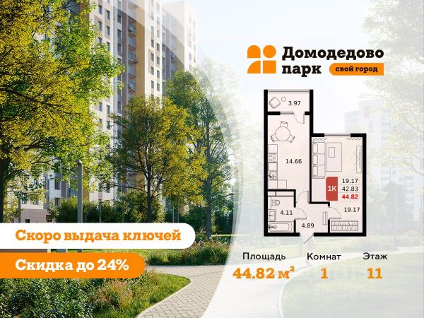 Выгода до 24%. Срок сдачи 2026 год. Продажа напрямую от застройщика в жилом комплексе комфорт класса "Домодедово парк" площадью 41.64 кв.м на 2 этаже 17 этажного дома. Квартира с предчистовой отделкой. Квартиры • Продуманные планировочные решения обеспечивают максимум естественного света. • Свободная планировка позволяет воплотить любые дизайнерские идеи. • Высота потолков в чистоте — 2,72 м. • Двухкамерные стеклопакеты сохраняют тепло в холодное время года. Транспортная доступность • Три крупных шоссе рядом: М4 "Дон" (бесплатный участок), Каширское и Симферопольское. • 39 минут на электропоезде до центра Москвы. • Железнодорожная станция — в пешей доступности. • Возможность выбрать удобную ветку метро с 5 остановками электропоезда в Москве. • Скоростная линия МЦД для быстрого передвижения. • Остановка маршрутного такси прямо на территории жилого комплекса. Холлы • Удобные помещения для хранения колясок и велосипедов на первых этажах — экономия места на лоджиях. • Витражное остекление от пола до потолка создает ощущение пространства и уюта с порога. • Высота потолков — 3,3 м, что дарит простор и лёгкость. • Полы отделаны элитной плиткой Kerama Marazzi. Дома • Надежный монолитный железобетон — проверенный временем материал. • Яркие фасады с облицовкой из керамогранита подчеркивают выразительность архитектуры. • Подвесные корзины для кондиционеров обеспечивают удобство монтажа и обслуживания. • Собственные коммуникации создают автономный комфорт. Инфраструктура • Действующие детский сад и школа — ваши дети учатся рядом с домом. • В 2026 году откроются ещё два детских сада — до них всего 5 минут ходьбы. • Вторая школа находится в стадии проектирования — забота о будущем. • Работающие терапевтический и стоматологический кабинеты для поддержки здоровья. • Продуктовые магазины, аптеки и кофейни уже рядом — всё необходимое в шаговой доступности. • В 12 корпусе откроется супермаркет — ещё больше удобства для жителей. Экология и природа • Экологически благоприятная территория — забота о вашем здоровье. • Чистый воздух для легкого дыхания и хорошего самочувствия. • Обустроенная набережная реки Пахры рядом с домом — идеальное место для пробежек, прогулок и отдыха с семьей.