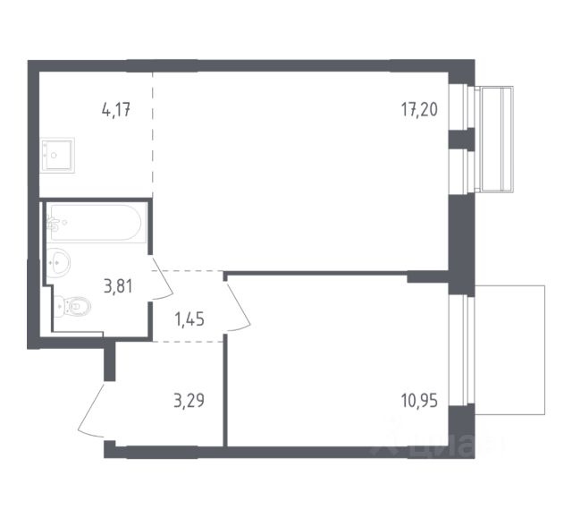 Продается 1-комн. квартира площадью 45,3 кв.м на 14 этаже 24 этажного дома в ЖК "Союзный" от федерального девелопера ГК "Вектор".