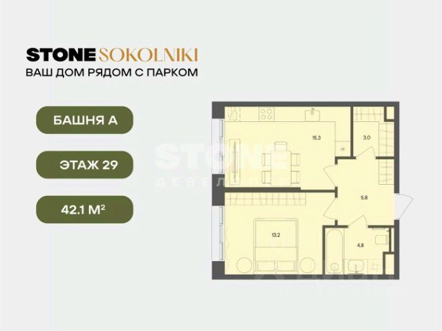 Старт продаж квартир в ЖК STONE SOKOLNIKI от девелопера STONE. В продаже студия правильной формы для реализации любого дизайн-решения, идеально подходящая как студентам, так и молодым парам, которые только планируют создать свой семейный очаг. Современная архитектура проекта органично вписана в городскую среду. Концепция проекта разработана архитектурным бюро WALL Проект состоит из трех разновысотных башен высотой в 33, 28 и 24 этажа с чистой геометрией и увеличенной площадью остекления, которая позволит насладиться городской панорамой и видами на парк "Сокольники". Транспортная доступность - 10 мин. пешком до метро и БКЛ "Сокольники" и "Электрозаводская" - 12 мин. пешком до парка Сокольники - 10 мин. пешком до станции МЦД-3 "Митьково", которая позволит комфортно добираться в центр города и за его пределы Инфраструктура: В каждой входной группе предусмотрены помещения для временного хранения велосипедов, лапомойка, гостевой санузел, а также комната матери и ребенка. А колясочные появятся на каждом этаже - ведь это самое удобное решение для детей и их родителей. Планировочные решения: Планировки квартир в STONE Sokolniki создавались с учетом разнообразия современных сценариев жизни в городе. В проекте предусмотрены просторные кухни-гостиные, изолированные спальни с мастер-блоком, планировки для семей со взрослыми детьми, с двумя детьми разных возрастов. Благодаря грамотному зонированию квартир можно насладиться и временем с семьей, и уединением или, наоборот, устроить вечеринку вместе с друзьями. - Квартиры от 28 до 135 кв. м. Детский сад во дворе дома: Девелопер STONE осуществляет самостоятельный поиск оператора для детского сада, так как курирует наполнение проекта. На этапе финальной готовности будет выбран лучший оператор, отвечающий запросам качества и цены. Во всех своих проектах девелопер берет на себя ответственность за сдачу части помещений. Удобное хранение: В проекте STONE Sokolniki предусмотрена максимальная обеспеченность кладовыми. Хранения велосипедов в подземном паркинге возможно в зимний период, а летом будет организовано временное хранение на улице. Колясочные есть на каждом этаже всех трех жилых башен. - Колясочные на этаже - Кладовые для хранения Безопасная собственная территория дома, сим и паркинг: Внутри двора комфортно перемещаться пешком, все въезды в паркинг организованы по внешнему периметру. Велосипеды, самокаты и электросамокаты, детские беговелы и коляски - в приоритете, для всех колесных видов транспорта продуманы удобные маршруты движения и варианты хранения в разные сезоны. STONE - девелопер коммерческой и жилой недвижимости классов бизнес и премиум в Москве с 19-летним опытом. С 2022 года занимает лидирующую позицию на офисном рынке (рейтинг РБК). Сегодня в портфеле девелопера представлено 3 млн кв. м построенных, строящихся и проектируемых объектов, из которых более 1 млн кв. м находятся в стадии строительства. Компания имеет самый масштабный проектный портфель офисной недвижимости класса А на московско Продам 1-комнатную квартиру в новостройке рядом с метро Сокольники.