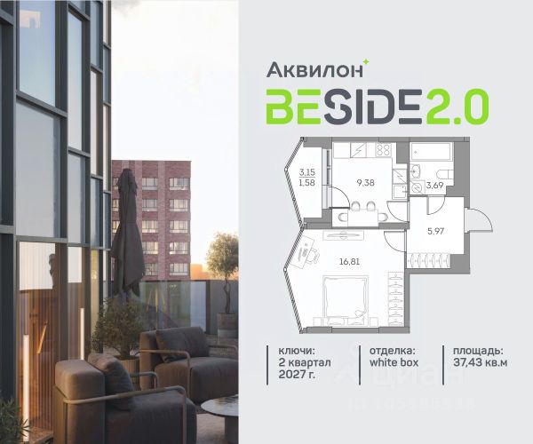Зимний ЦЕНОпад. На данный лот распространяется скидка, которая действует только в январе! Продажа от застройщика. Продается уютная однокомнатная квартира на 25 этаже современного жилого комплекса Beside 2.0. Вид из окон: во двор. Срок сдачи: 2 кв. 2027 г. Квартира с лоджией. Отделка WhiteBox: - Вам не придется заниматься черновыми работами. - Возможность реализовать любой дизайн-проект. Расположение: В Beside 2.0 все необходимое - в шаговой доступности, не нужно тратить много времени на дорогу до работы, школы и поликлиники, походы в магазины и кинотеатры. Квартал расположен на пересечении ключевых транспортных магистралей Москвы, что позволяет быстро и легко добраться до любой нужной локации. Выбирайте наиболее подходящее занятие или попробуйте все! - Спортивные центры - Ретейл на первых этажах - Событийная площадь с амфитеатром - Дворовые площадки для активностей Транспортная доступность: - 5 минут на машине до ТТК - 7 минут на машине до Садового кольца - 7 минут пешком до станции "Нижегородская Внутренняя инфраструктура Beside 2.0: - Своя школа на 825 учеников - Просторное и светлое гранд-лобби - Коворкинг на открытом воздухе - Детский клуб Akvilon Kids - Подземный паркинг - Колясочные и велосипедные - Сити-боксы для хранения - Профессиональная управляющая компания Преимущества: - Технология энергоэффективности Termo-S, снижающая теплопотерю домов и позволяющую экономить на электроснабжении - Soundstop - технология дополнительной шумоизоляции на 39 дБ в квартирах с WhiteBox и чистовой отделкой - Система умного дома inHome 3.0 позволит контролировать коммунальные расходы, оплачивать счета и пользоваться услугами, не выходя из умного дома - Vent-In - система циркуляции воздуха в каждой комнате