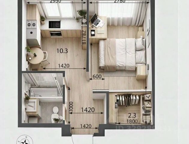 Площадь: 23,6 кв.м (студия).